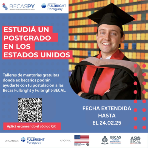 La Universidad Católica «Nuestra Señora de la Asunción» hace extensiva la invitación a la comunidad universitaria a participar en los talleres gratuitos de mentoría organizados por la Asociación Fulbright Paraguay. Estos talleres tienen como objetivo guiar a los postulantes en el proceso de aplicación a las prestigiosas becas completas de posgrado Fulbright en los Estados Unidos. La iniciativa cuenta con el respaldo de BecasPy, Becal y la Embajada de los Estados Unidos.