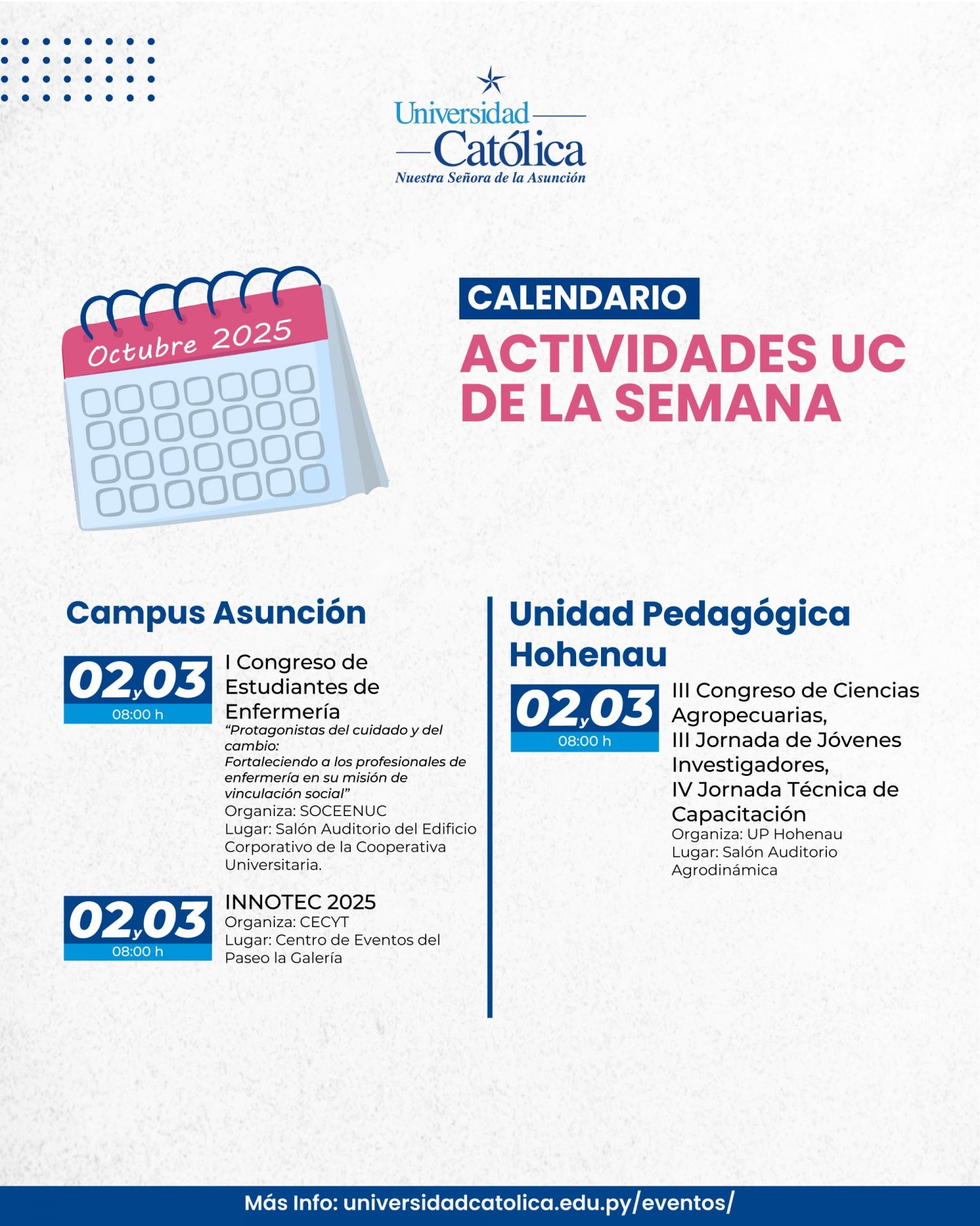 Agenda Semanal UC del 01 de octubre al 05 de octubre