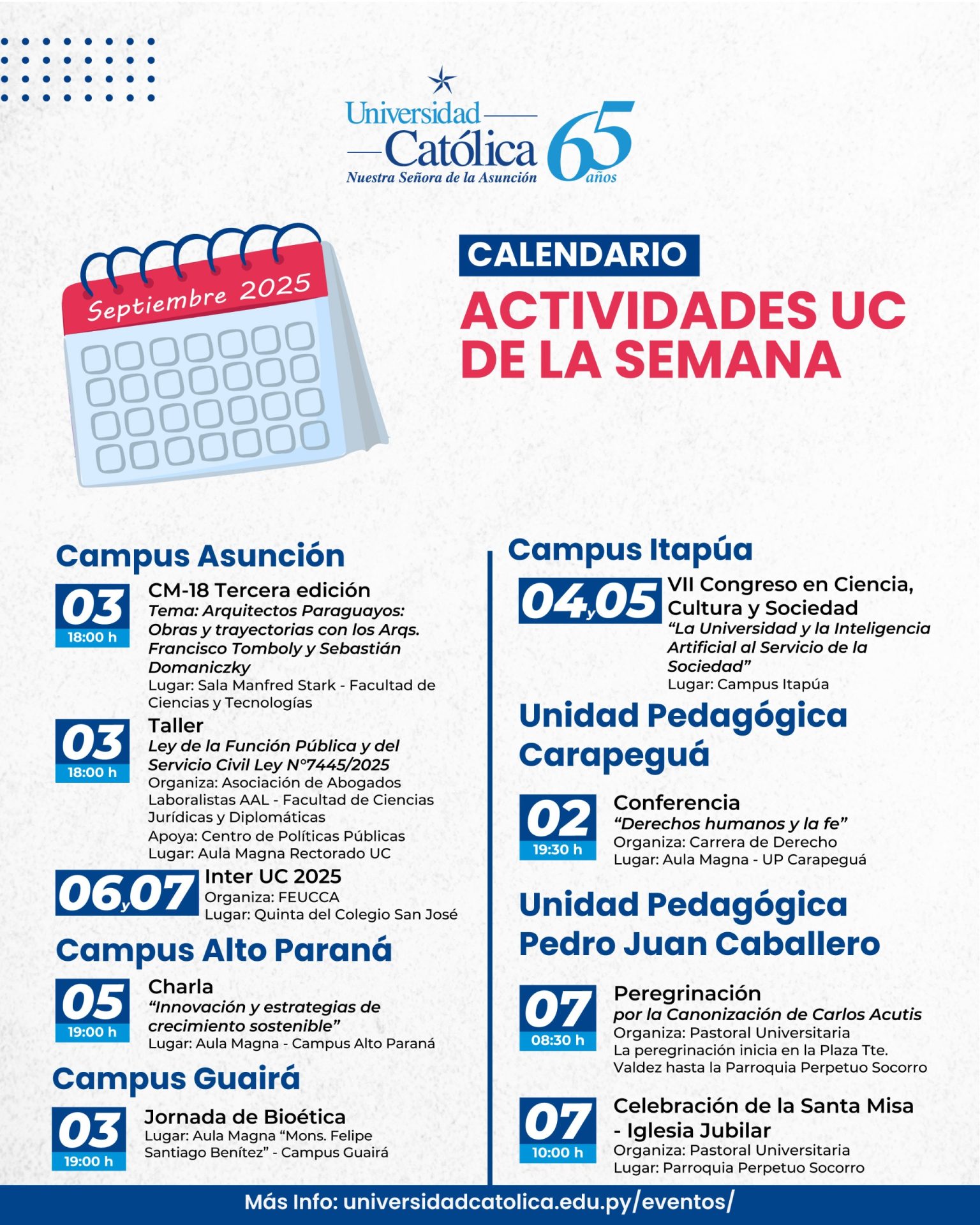 Agenda Semanal UC del 01 de septiembre al 07 de septiembre
