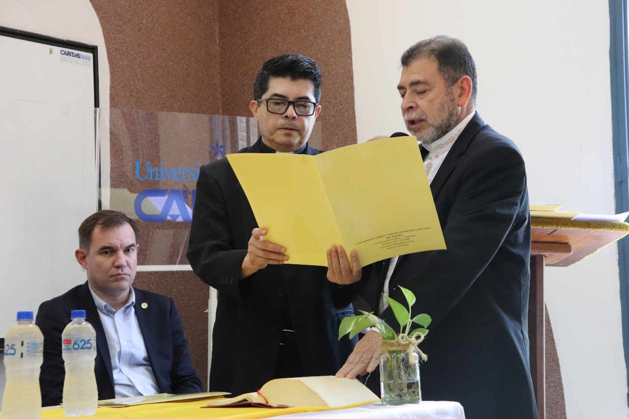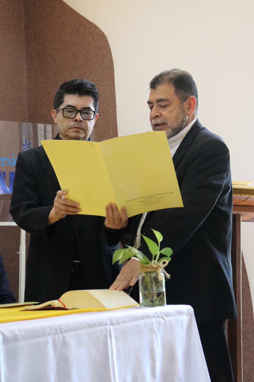 En la jornada de hoy se llevó a cabo la ceremonia de posesión al cargo, profesión de fe y juramento de fidelidad del nuevo Director General de Radio Cáritas Universidad Católica, el Pbro. Lic. Fermín Castellano Silvero.