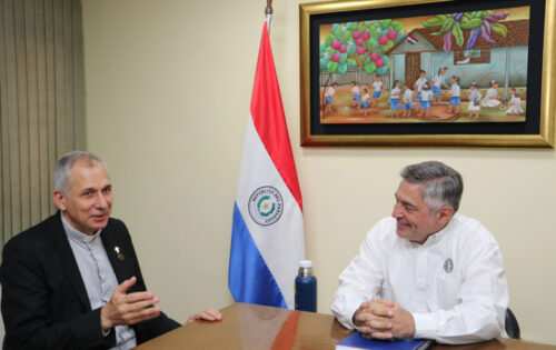 En la mañana del jueves 24 de abril, el Rector de la Universidad Católica “Nuestra Señora de la Asunción”, Prof. Dr. Cristino Bohnert, mantuvo una reunión con el Ministro de Educación y Ciencias, Don Luis Ramírez, acompañado de su equipo de asesores, con el objetivo de dialogar sobre el sistema de educación superior en el país y el mejoramiento de la calidad educativa.