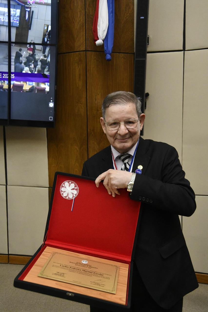 El periodista, escritor y docente Carlos Federico Martini Escolar recibió la Orden Nacional al Mérito “Comuneros”, una de las más altas distinciones otorgadas por la Cámara de Diputados de la Nación, en reconocimiento a su destacada trayectoria en el ámbito periodístico, académico y cultural del Paraguay.