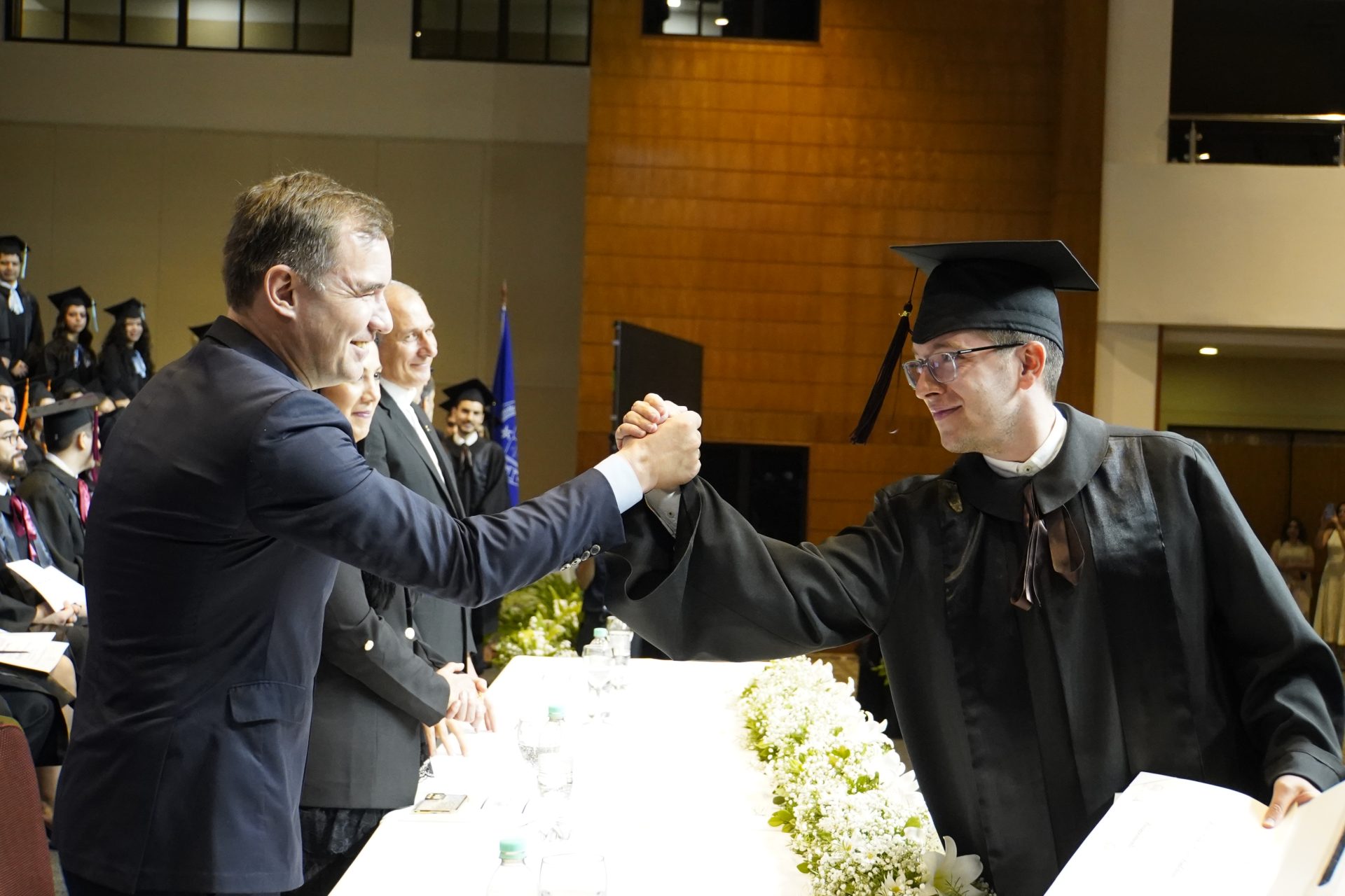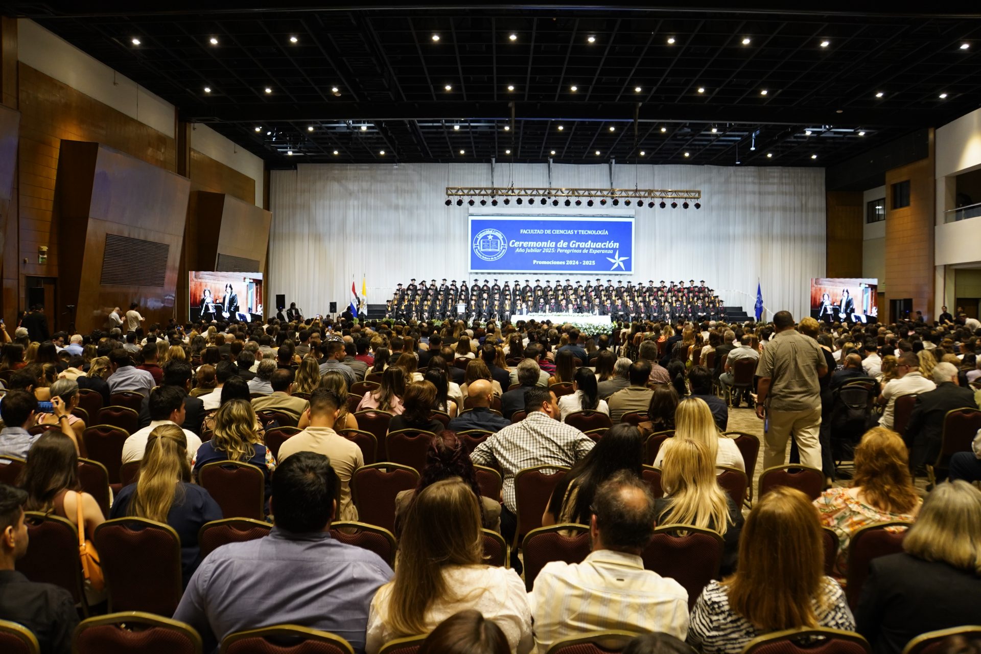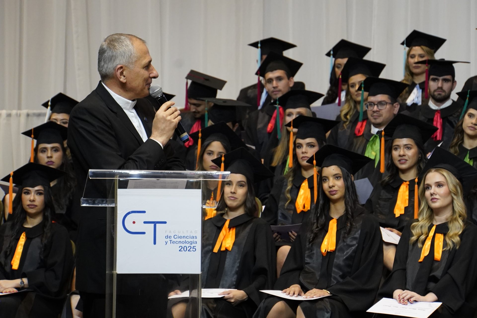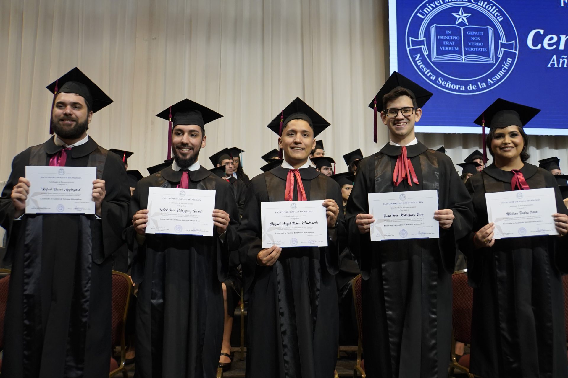 El pasado viernes 24 de octubre, se llevó a cabo en el Centro de Convenciones de la Conmebol, el Solemne Acto de Graduación, presidido por el Rector de la Universidad Católica, Pbro. Prof. Dr. Cristino Bohnert Bauer, acompañado del Decano de la Facultad de Ciencias y Tecnología, Prof. Lic. José Guillermo von Lücken M., MSc.