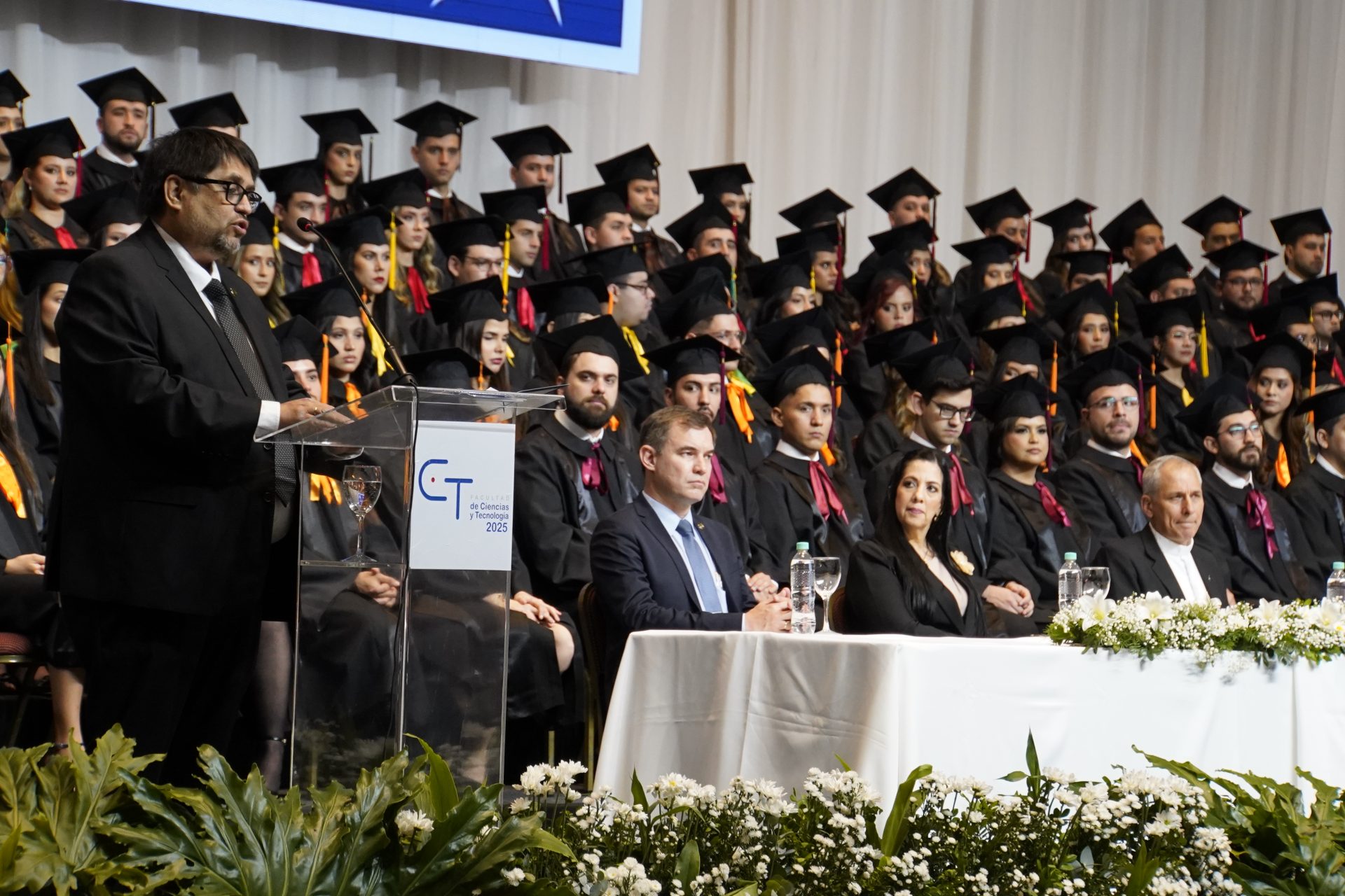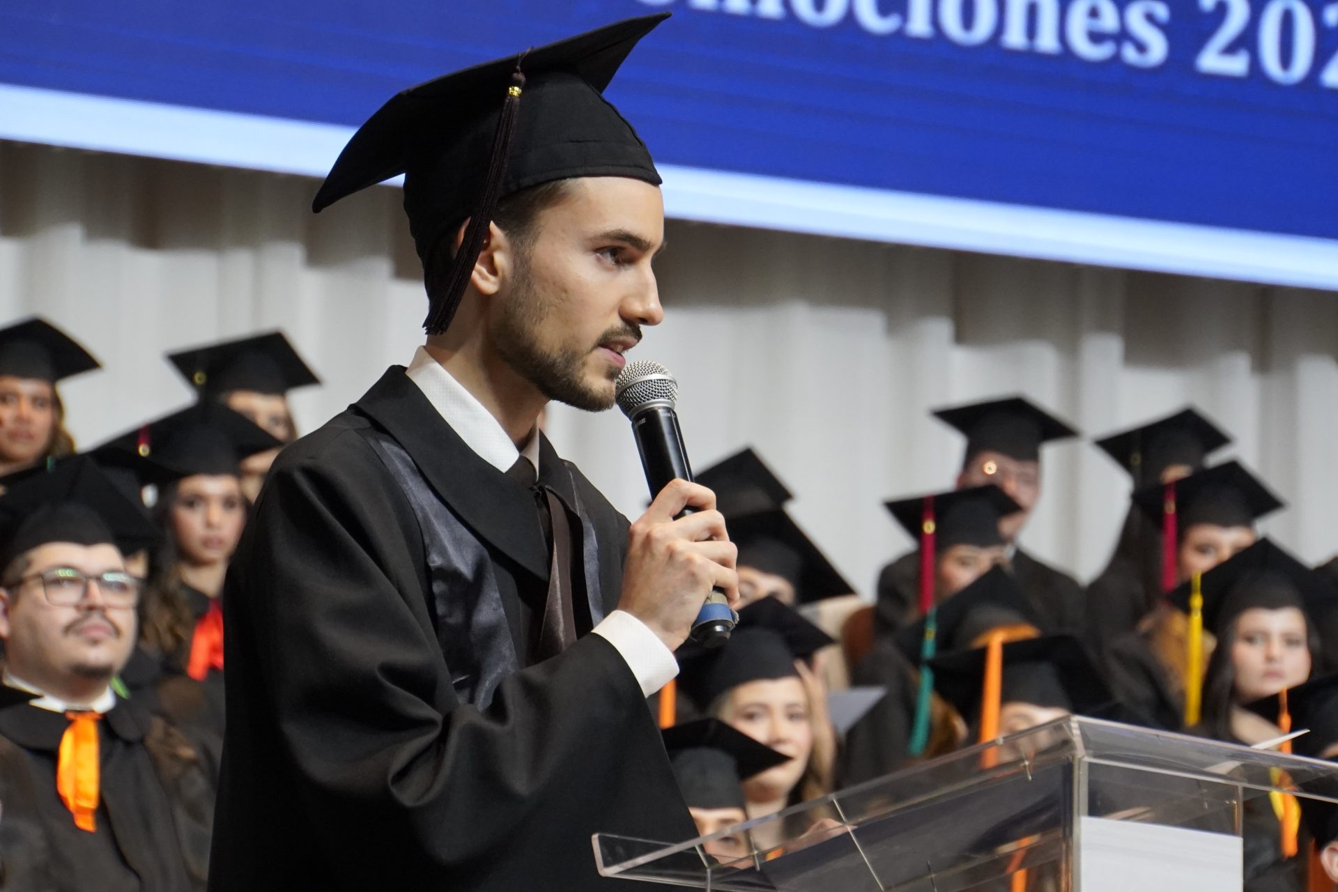 Durante la ceremonia, el Ingeniero Industrial Santiago Manuel Escobar González, mejor egresado de la Promoción 2024–2025, dirigió unas palabras en representación de sus compañeros, antes del mensaje final del Rector, quien destacó la misión formativa de la Universidad y exhortó a los nuevos profesionales a servir a la sociedad con compromiso, esperanza y excelencia.
