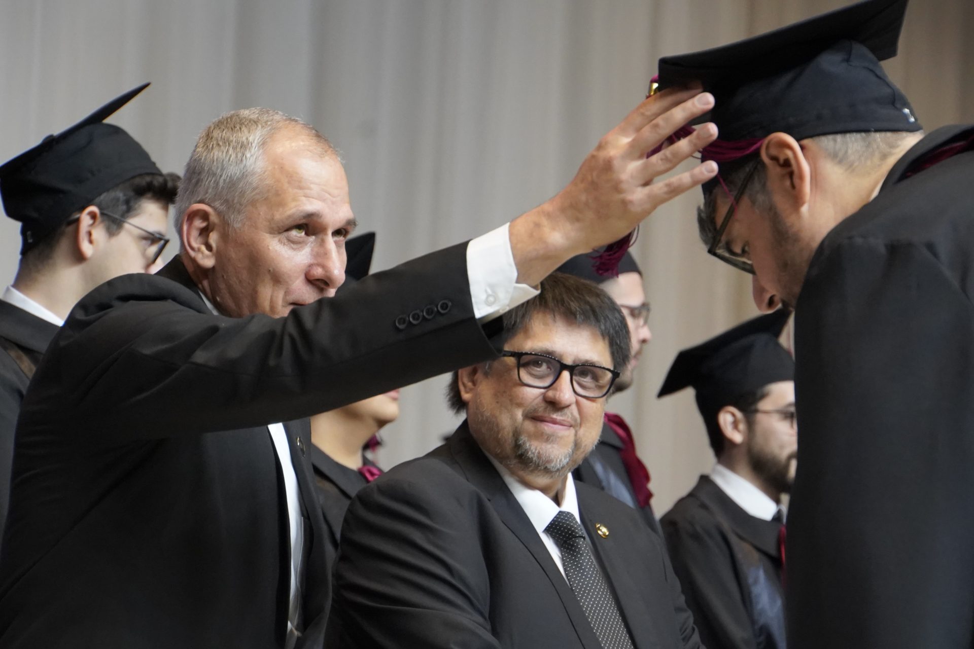 El acto incluyó el solemne ingreso procesional de egresados, egresadas y autoridades, seguido de la entonación del Himno Nacional Paraguayo a cargo del Ensamble de Cámara del Conservatorio de Música de la UC, que también brindó un destacado momento cultural.