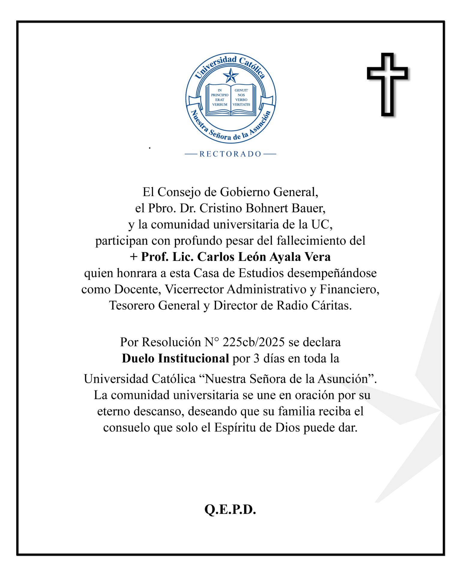 Nos unimos en oración por el eterno descanso de referentes que dedicaron sus vidas al servicio de la educación, dejando un legado de valores, compromiso y excelencia en la Universidad Católica.