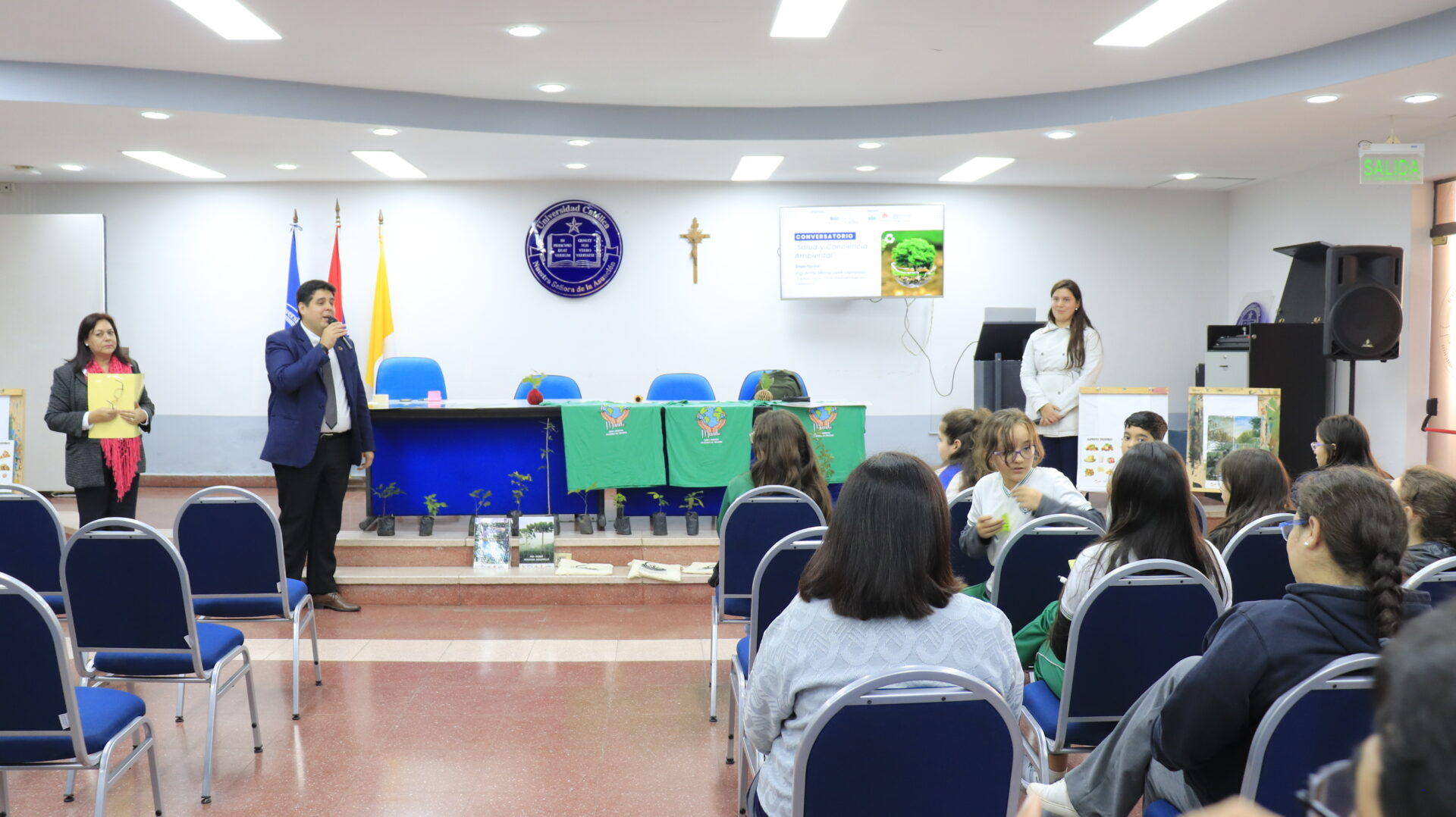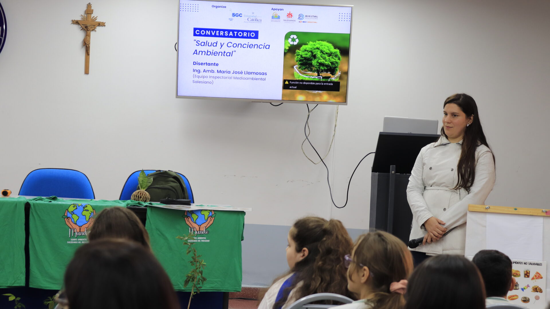 Bajo el lema “Salud y Conciencia Ambiental”, ayer martes 10 de junio se llevó a cabo un conversatorio en Aula Magna del Rectorado UC. La charla fue dirigida por la Ing. Amb. María José Llamosas y colegas, del Equipo Inspectorial Medioambiental Salesiano.