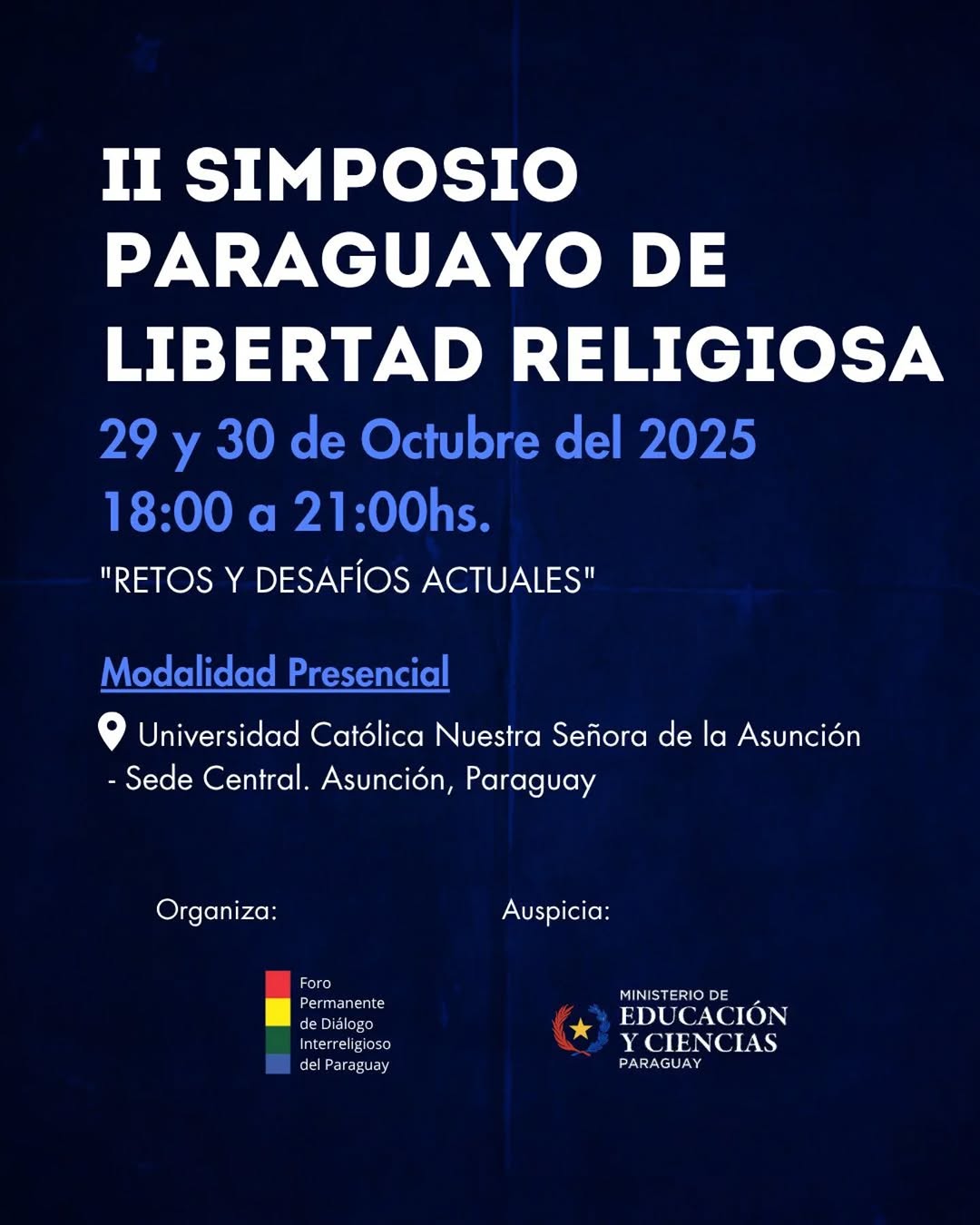 La Universidad Católica “Nuestra Señora de la Asunción” mediante la Resolución Nº 202cb/2025 Declaró de Interés Institucional al II Simposio Paraguayo de Libertad Religiosa 2025, un espacio de diálogo y reflexión que busca fortalecer el respeto, la cooperación y la convivencia entre las diversas expresiones religiosas y filosóficas del país.