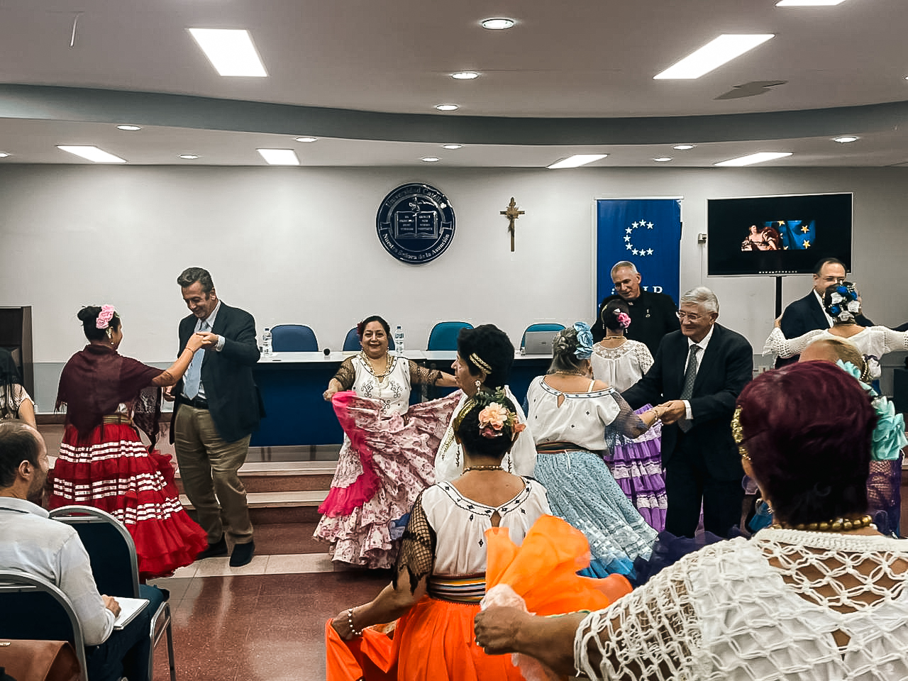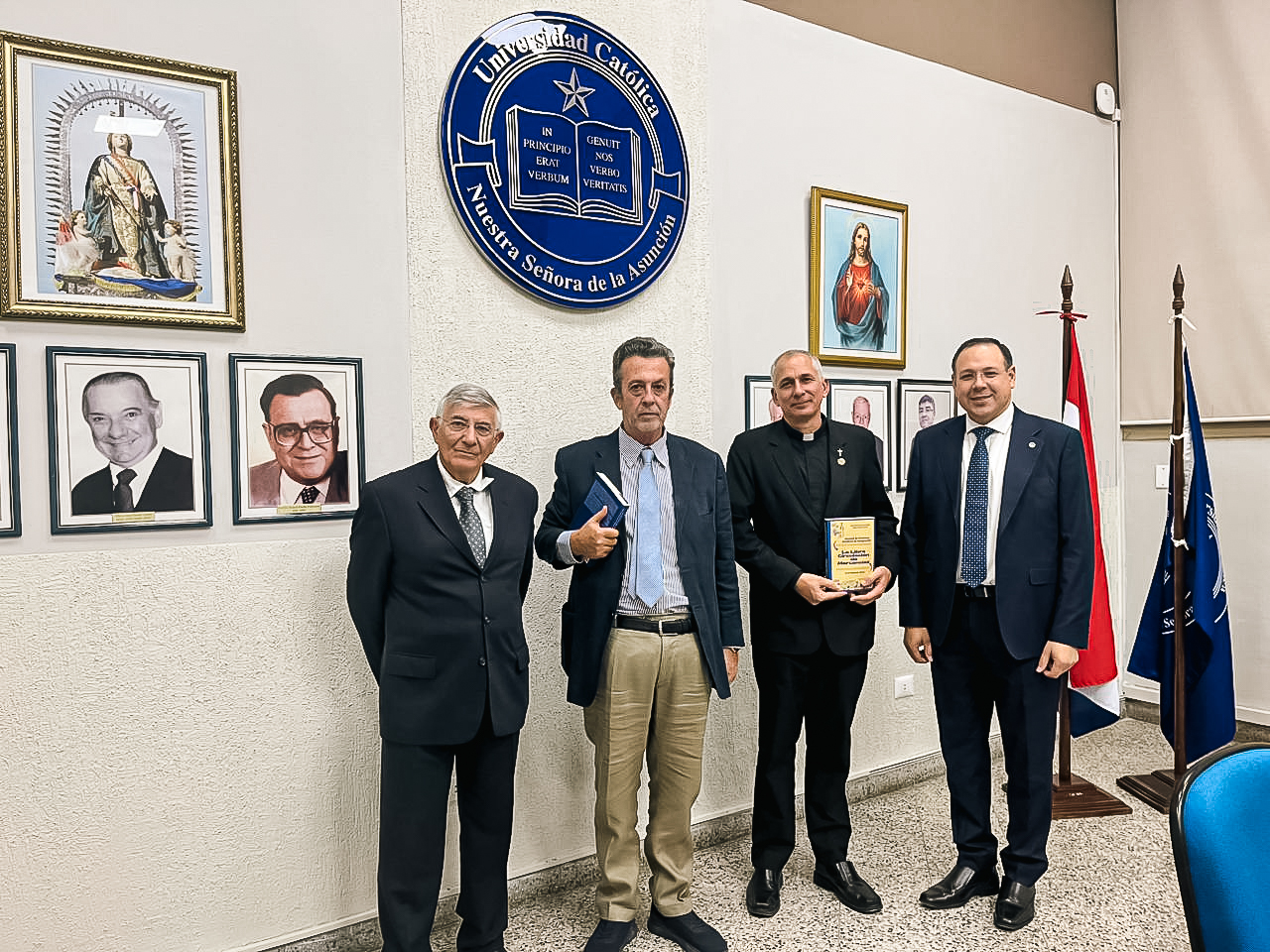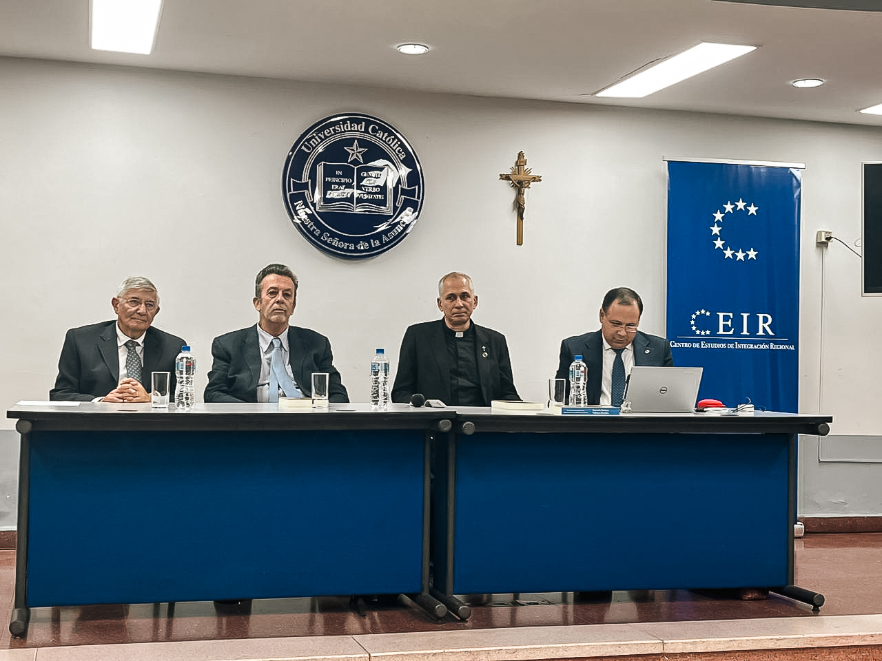 El evento contó con la participación del Embajador de Italia en Paraguay, Dr. Marcello Fondi, el Dr. Alfredo De Feo, Director Científico del Collegio Europeo di Parma  e Investigador en el Archivo Histórico de la Unión Europea (Italia), el Decano de la FCJD, Dr. César Ruffinelli además del catedrático Dr. Adolfo Vallejos Morales y la presencia del Rector de la Universidad, Pbro. Prof. Dr. Cristino Bohnert Bauer.
