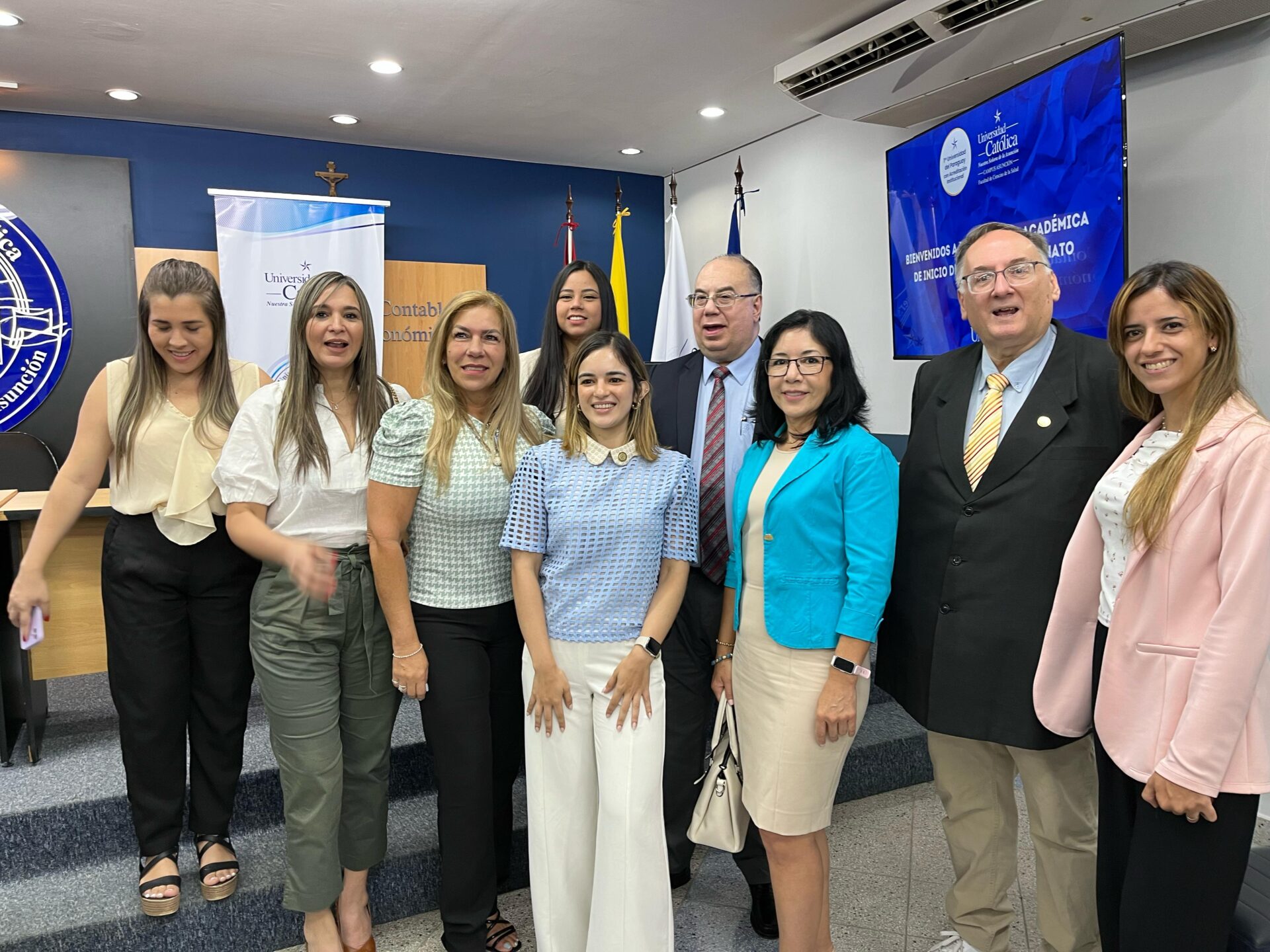 Luego de la bendición, a cargo del P. Miguel Ortigoza, el Pbro. Dr. Cristino Bonhert, Rector UC, invitó a los miembros de la FCS a la búsqueda conjunta de la verdad, trabajo en equipo y trabajo en redes. También estuvieron presentes la Vicerrectora Académica y de Investigación, Rossanna Benítez O., Vicerrector de Administración y Finanzas, Óscar López G. y la saliente decana de la FCS, Dra. María M. Mayor.