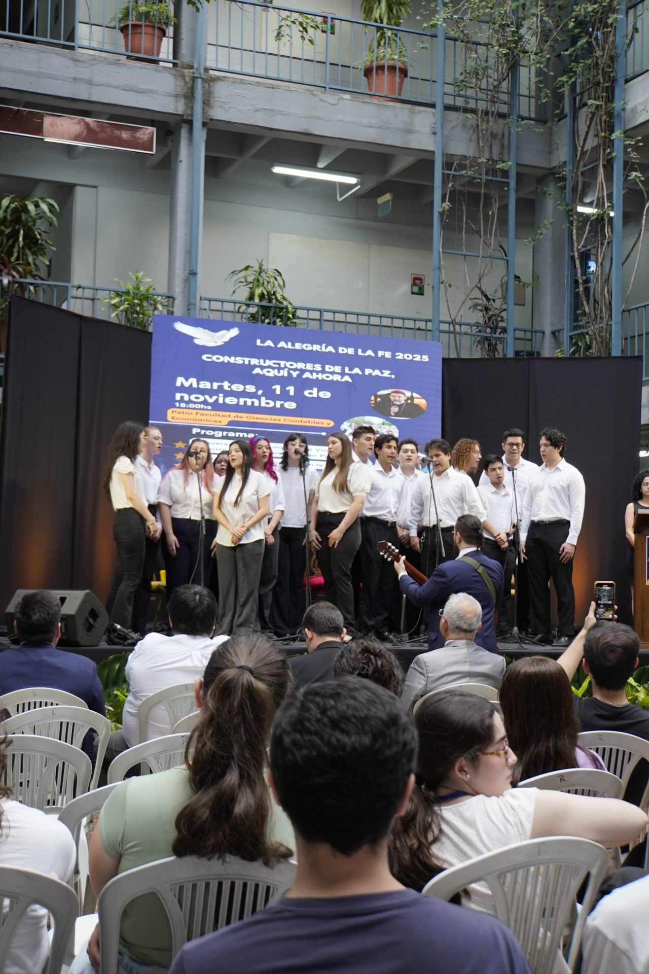 La Pastoral Universitaria de la Universidad Católica “Nuestra Señora de la Asunción” llevó a cabo, el martes 11 de noviembre, la jornada “La Alegría de la Fe”, un espacio de encuentro, reflexión y vida comunitaria que reunió a estudiantes, docentes y colaboradores para compartir la espiritualidad que anima la misión de la UC, desarrollada en esta ocasión en el patio interno de la Facultad de Ciencias Contables, Administrativas y Económicas.