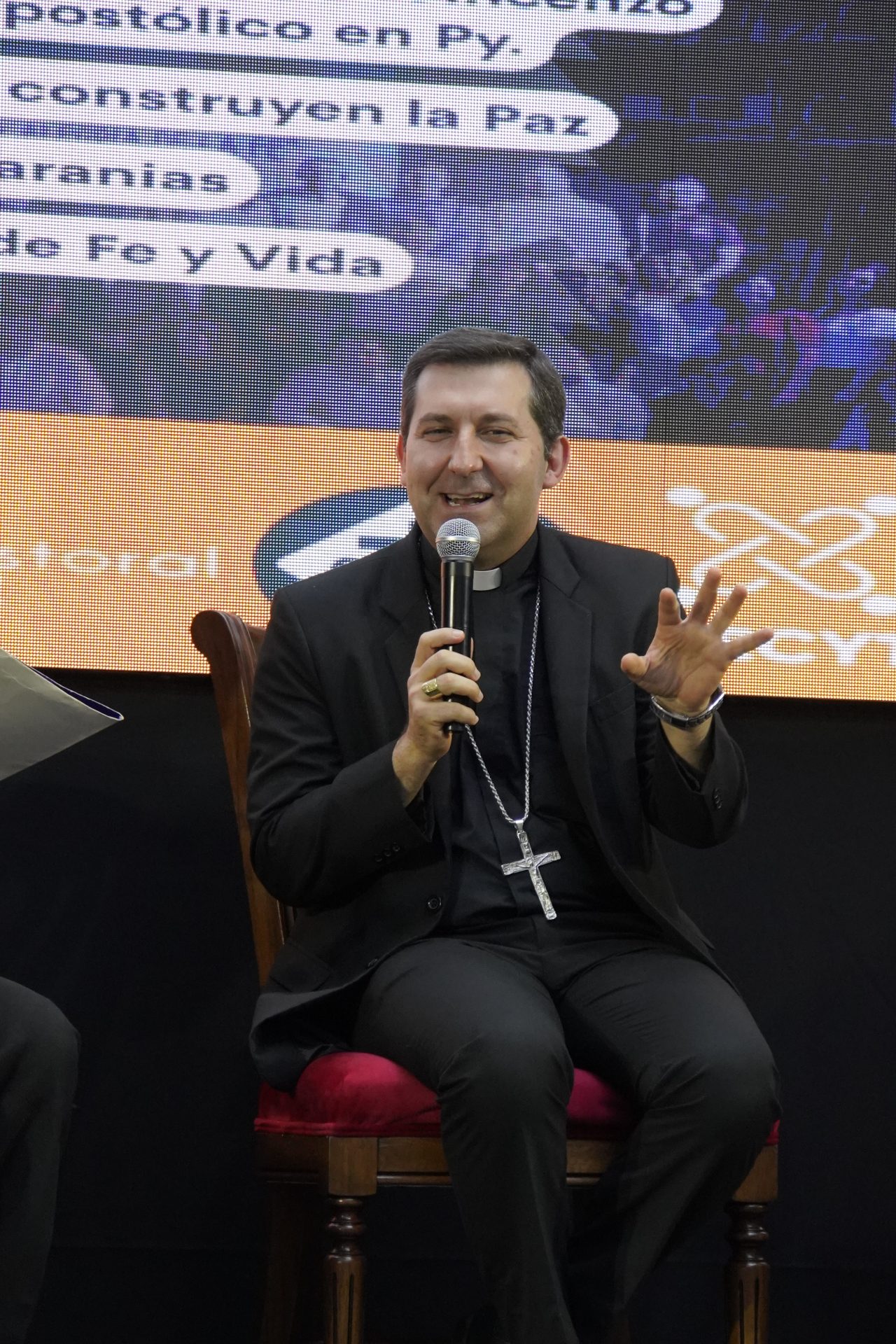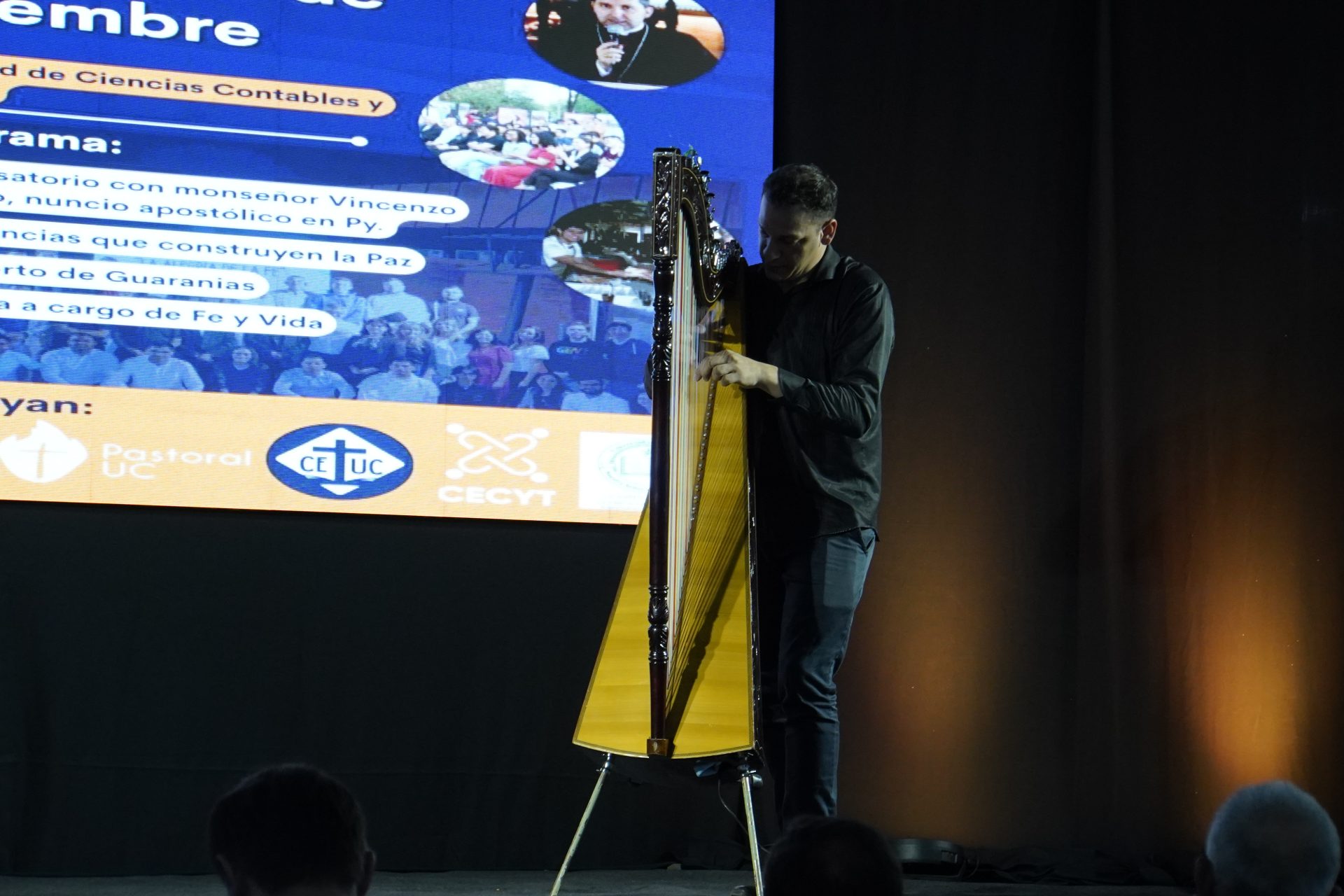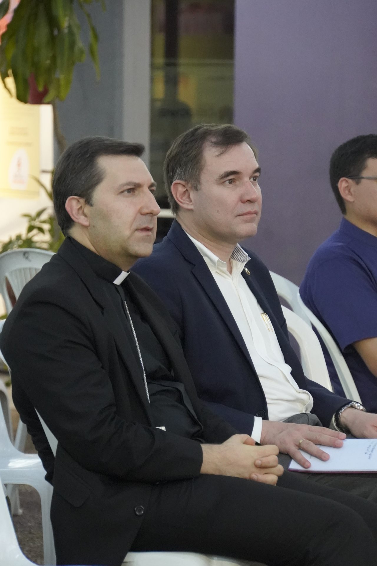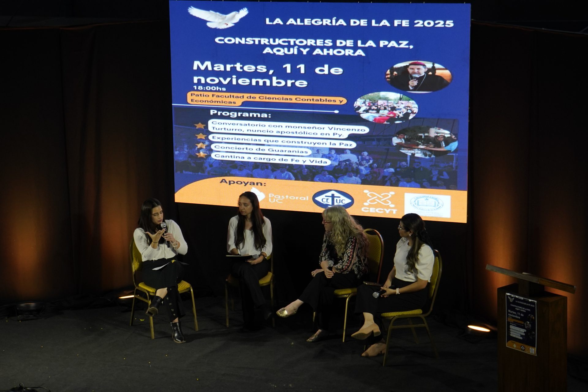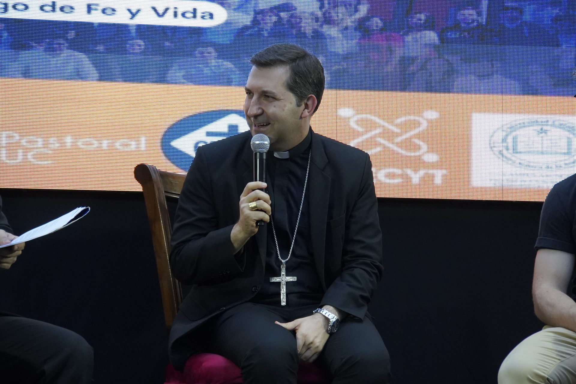 El evento tuvo como propósito fortalecer la vivencia de la fe dentro del ámbito académico, promoviendo valores cristianos que inspiran al servicio, a la fraternidad y al compromiso con el prójimo. Durante la jornada, una de las actividades centrales fue un conversatorio con el Excmo. y Rvdmo. Sr. Mons. Vincenzo Turturro, Nuncio Apostólico de la Santa Sede en Paraguay, quien compartió su experiencia diplomática y su visión sobre el papel de los jóvenes, la Iglesia y la sociedad. Durante el diálogo los participantes pudieron plantear preguntas, intercambiar ideas y reflexionar sobre los desafíos actuales desde la fe. El Mons. Turturro subrayó que “es lindo ver a los jóvenes comprometidos” y animó a que no se adopte una postura de indiferencia frente a la realidad, sino que los universitarios se involucren con responsabilidad, solidaridad y esperanza.