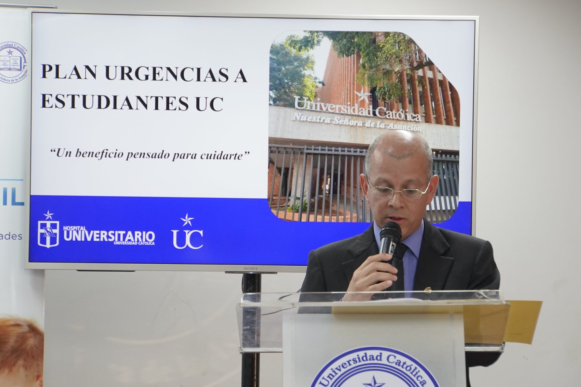 La Universidad Católica en colaboración con el Hospital Universitario Nuestra Señora de la Asunción (HUNSA) presentaron el “Plan Urgencias para Estudiantes UC Campus Asunción”, mediante una conferencia de prensa realizada en el Aula Magna de Rectorado, en presencia de autoridades académicas y administrativas de la UC, representantes estudiantiles, decanos y miembros de la comunidad universitaria.