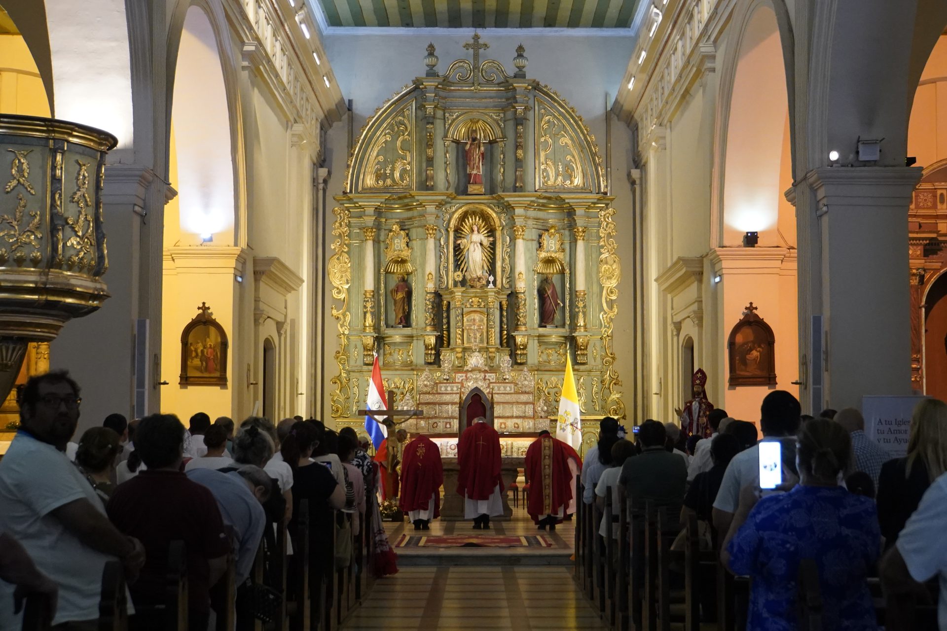 En un espacio de oración, encuentro y reflexión, la Universidad Católica “Nuestra Señora de la Asunción” ha celebrado la Santa Misa en acción de gracias a “San Blas, la Patria y la Democracia” el día de hoy en la Catedral de Asunción, presidida por el Rector de la UC el Pbro. Dr. Prof. Cristino Bohnert Bauer, co-celebrada por el Pbro. Sergio Ayala, Secretario General y el Pbro. Javier De Haro, Director de Pastoral Universitaria, así como también los diáconos y estudiantes de diaconado.