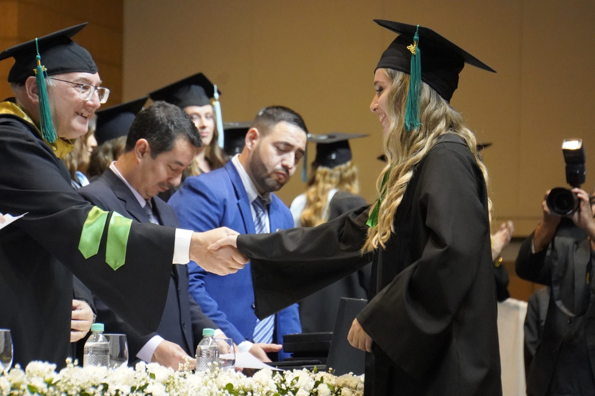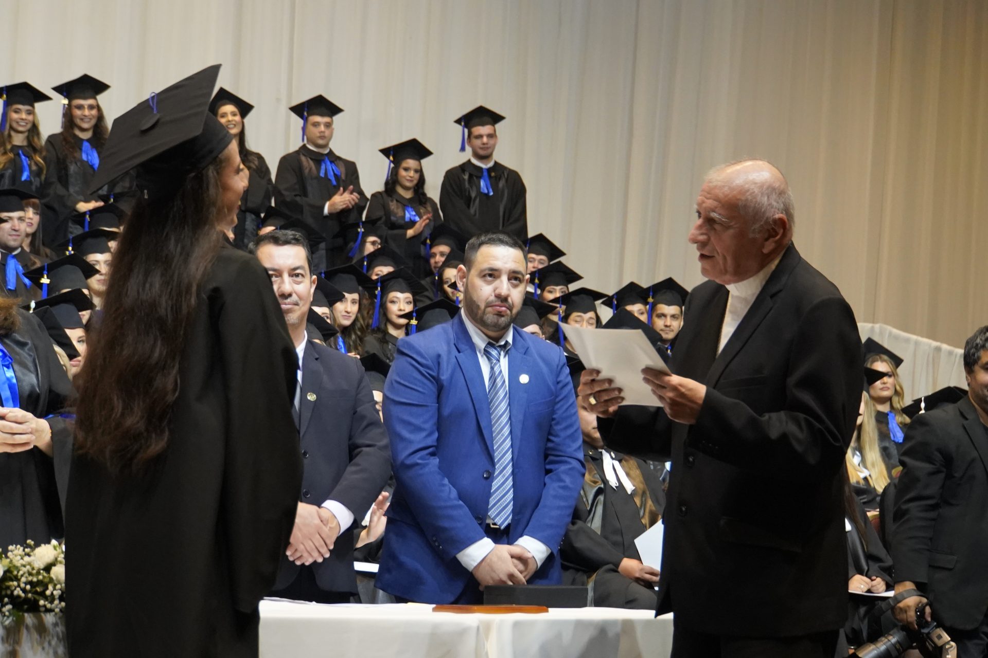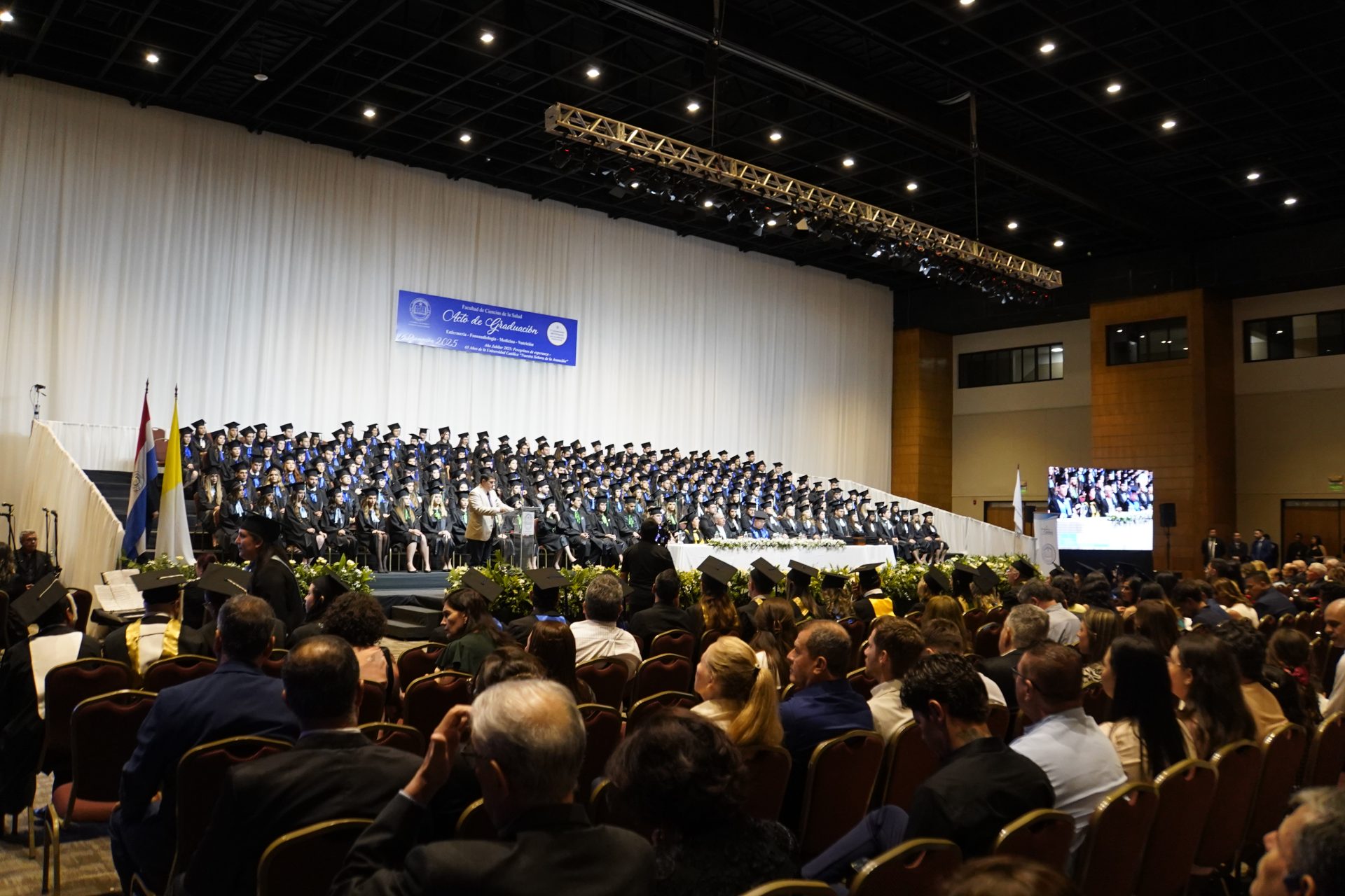 Posteriormente, el pasado viernes 12 el solemne Acto de Graduación en el Centro de Convenciones de la Conmebol, presidido por el Rector de la UC, Pbro. Prof. Dr. Cristino Bohnert Bauer, acompañado del Decano de la FCS el Dr Rafael Figueredo Grijalba