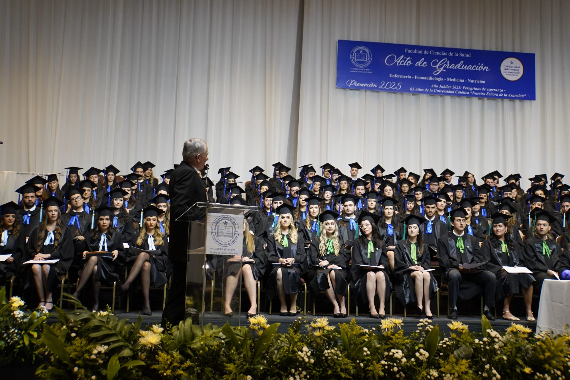 En un ambiente de profunda gratitud y emoción, la Facultad de Ciencias de la Salud (FCS) – Campus Asunción celebró el día domingo 07 de diciembre la Misa de Acción de Gracias por los alumnos graduados de la Promoción 2025, en el marco del Año Jubilar 2025: “Peregrinos de Esperanza” – 65 años de la Universidad Católica “Nuestra Señora de la Asunción” presidida por el capellán de la FCS Pbro. Miguel Ortigoza , en la Catedral Metropolitana de Asunción.