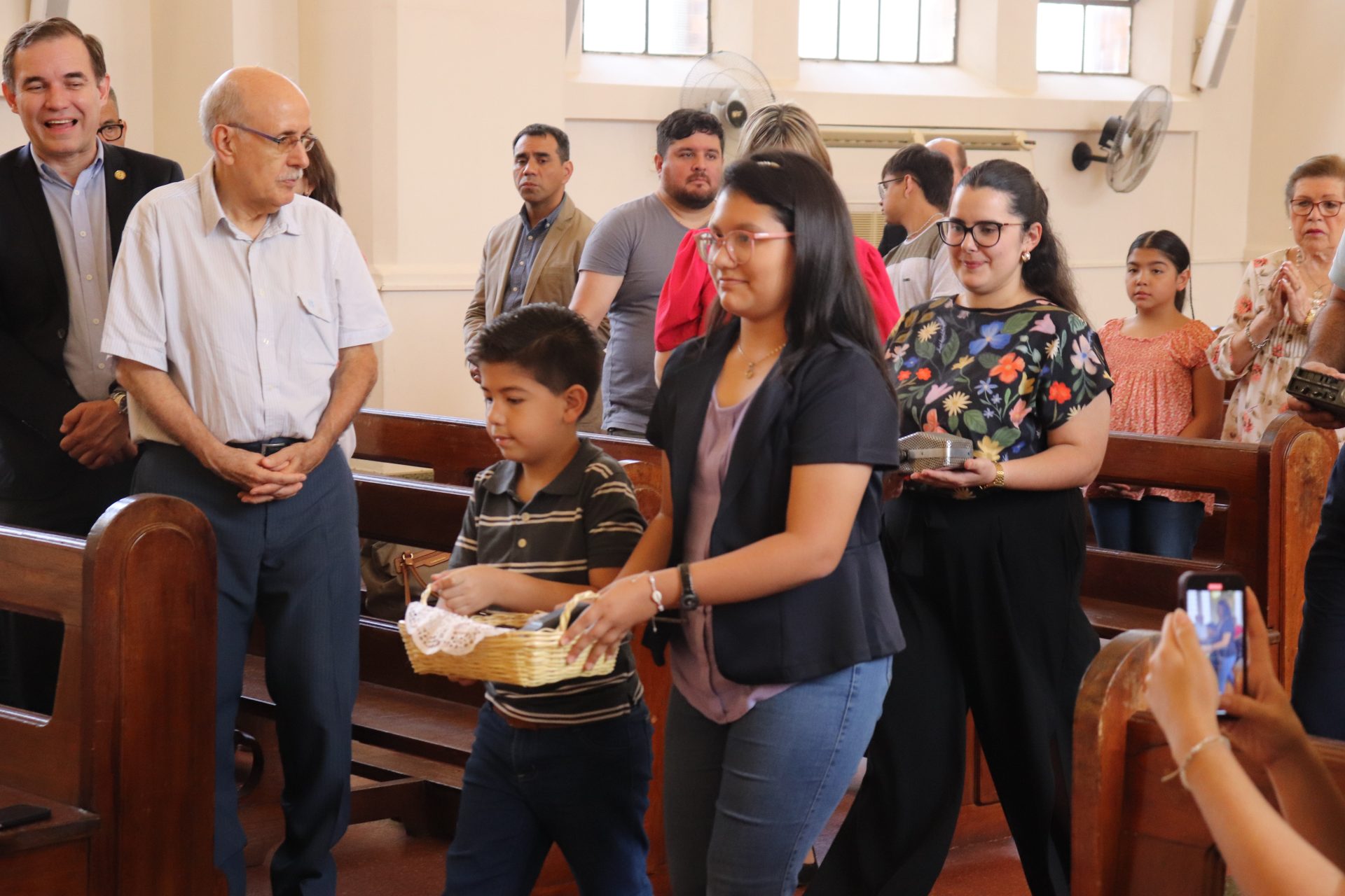 En el marco de las celebraciones por el 89º aniversario de Radio Cáritas Universidad Católica, el viernes 21 de noviembre se llevó a cabo la Misa de Acción de Gracias en la Capellanía Virgen de la Asunción. La ceremonia fue concelebrada por Mons. Amancio Benítez, Obispo de Benjamín Aceval; el Pbro. Dr. Cristino Bohnert Bauer, Rector de la Universidad Católica “Nuestra Señora de la Asunción”; el Pbro. Lic. Fermín Castellano Silvero, director general de Radio Cáritas UC; el Pbro. Richard Noguera y el Padre Ismael Fuentealba, E.P.