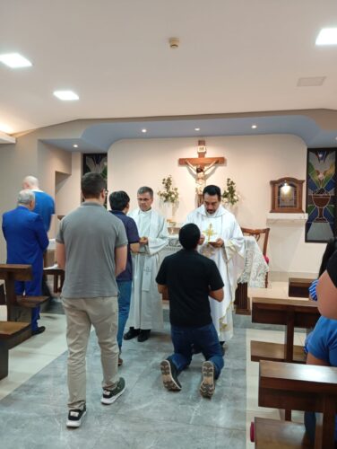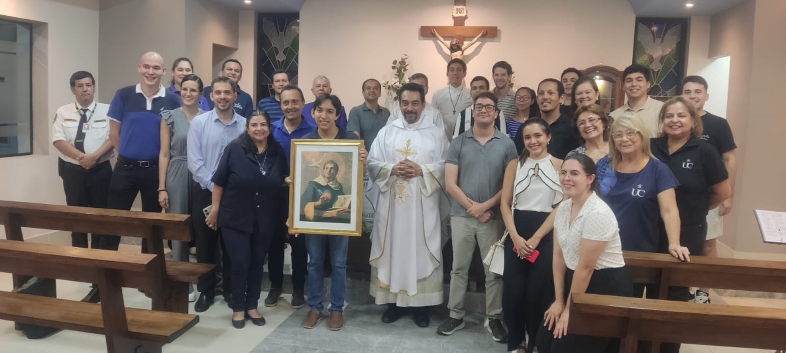 El día de ayer, 28 de enero, se celebró una Santa Misa en honor a Santo Tomás de Aquino, santo patrono de los estudiantes universitarios. La ceremonia tuvo lugar en la capilla de la Facultad de Ciencias Contables, Administrativas y Económicas (FCCAE) y fue concelebrada por el Rvdo. Javier de Haro, coordinador de la Pastoral Universitaria, y el Pbro. Osmar Fleitas, capellán de la FCCAE.