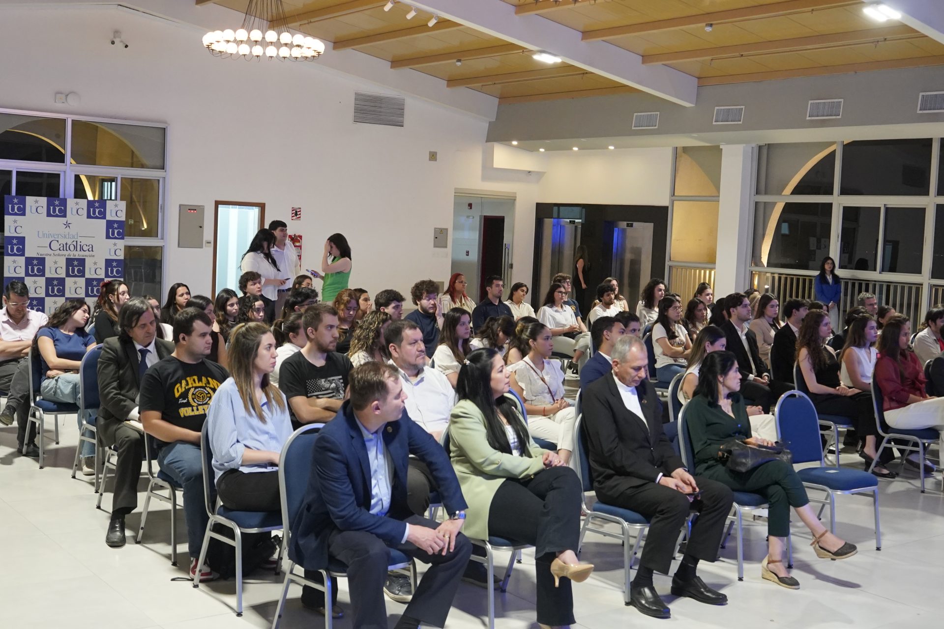 El evento tuvo lugar en el salón auditorio del séptimo piso de la Facultad y contó con la presencia del Rector de la Universidad, Pbro. Dr. Cristino Bohnert, la Vicerrectora Académica y de Investigación, Mag. Rossanna Benítez, el Vicerrector de Administración y Finanzas, Mag. Oscar López, la Decana de la FFCH, Lic. Stella Olmedo, además de directores de carrera, docentes, administrativos y estudiantes.