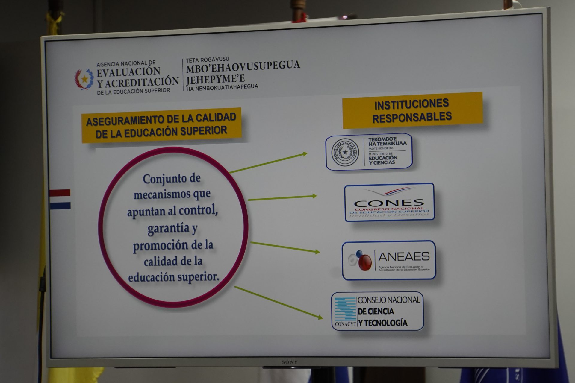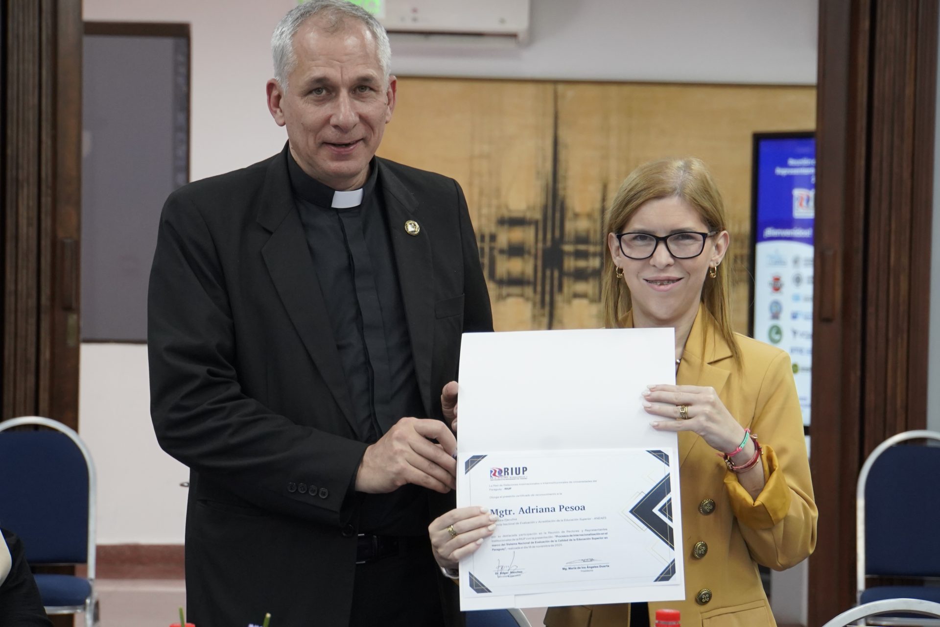 En representación de la UC participaron el rector, Pbro. Dr. Cristino Bohnert Bauer; la vicerrectora académica y de investigación Mag. Rossanna Benítez Ortíz y la encargada de relaciones interinstitucionales, Dra. Minerva Izquierdo. Acompañaron además autoridades del Vicerrectorado Administrativo y Financiero y miembros del Vicerrectorado Académico y de Investigación. La jornada contó igualmente con la presencia de delegaciones de la Universidad Nacional de Asunción (UNA), Universidad Nacional de Pilar (UNP), Universidad del Cono Sur de las Américas (UCSA), Universidad Tecnológica Intercontinental (UTIC), Universidad Autónoma de Asunción (UAA), Universidad Iberoamericana (UNIBE), Universidad Columbia del Paraguay (UCPy), Universidad Metropolitana de Asunción (UMA), Universidad Nihon Gakko, Universidad del Pacifico (UP), Universidad María Auxiliadora (UMAX); y la Agencia Nacional de Evaluación y Acreditación de la Educación Superior (ANEAES).