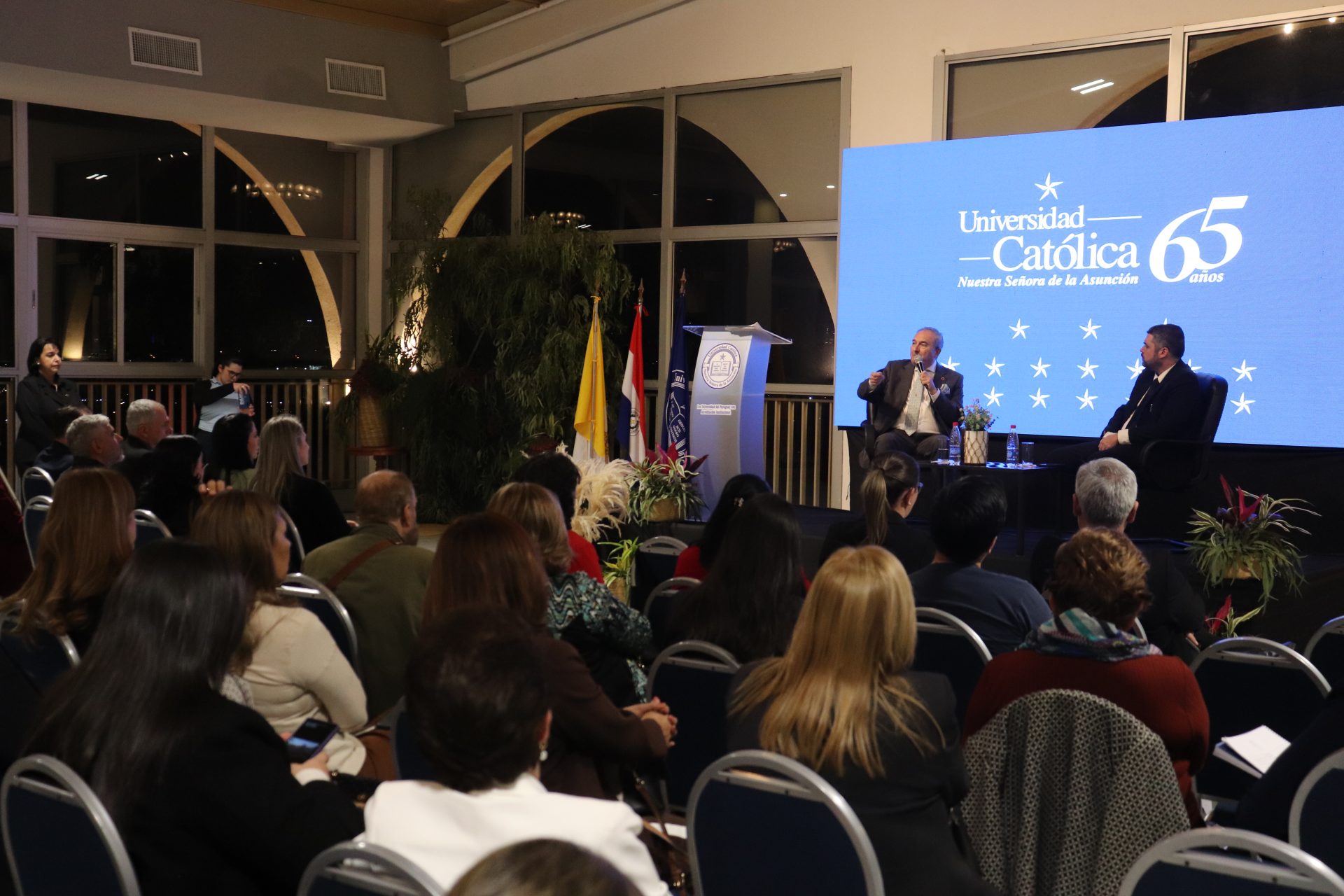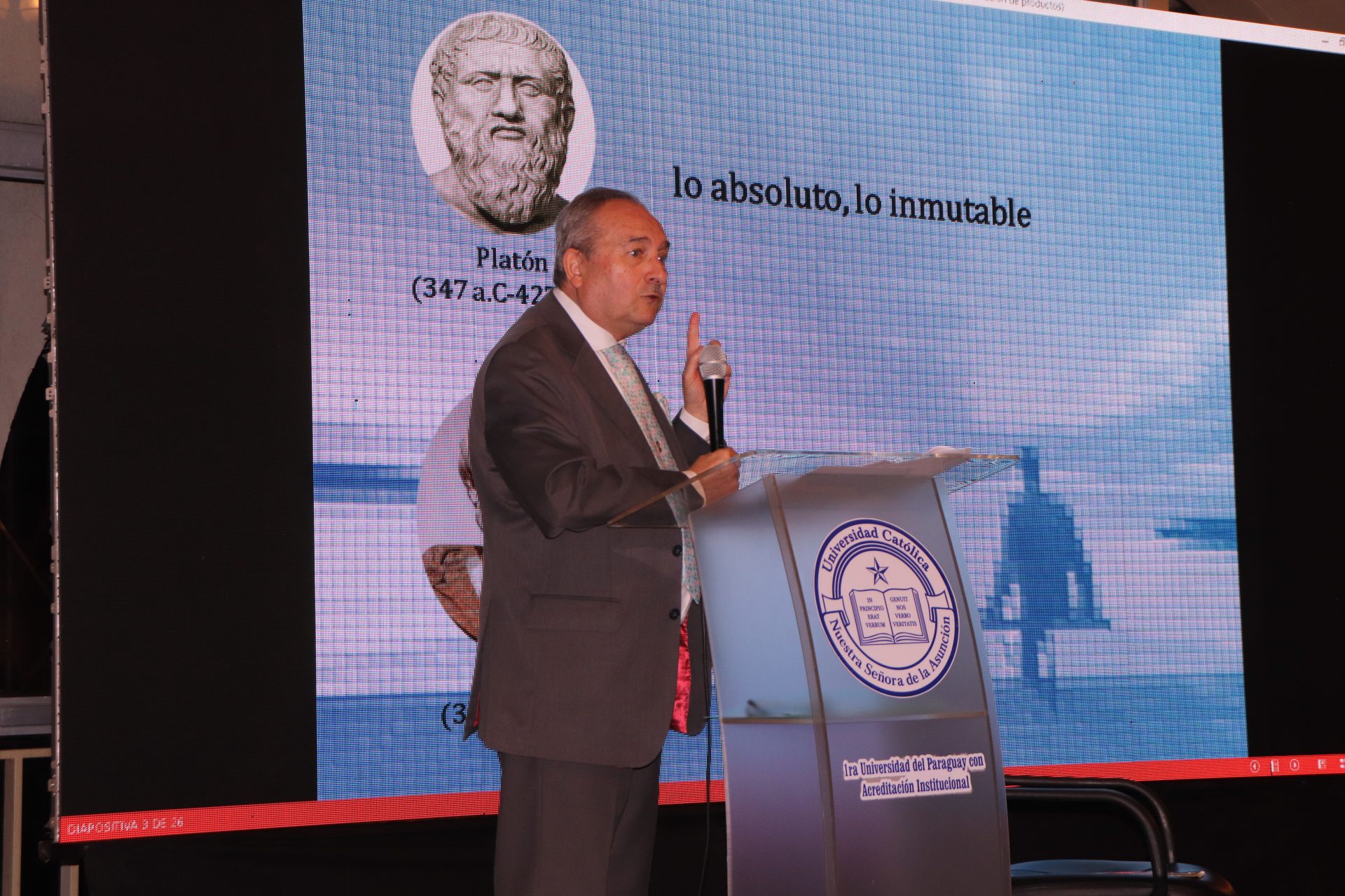 En el marco de la celebración por los 65 años de la Universidad Católica “Nuestra Señora de la Asunción”, el Vicerrectorado Académico y de Investigación UC organizó, el pasado 13 de agosto, la Conferencia Magistral “Investigación Cualitativa: Metodología de la Esperanza”, a cargo del Dr. Tomás Campoy Aranda, docente e investigador de la Universidad de Jaén, España. El encuentro tuvo lugar en el salón multiuso del 7.º piso de la Facultad de Filosofía y Ciencias Humanas – Campus Asunción, con la participación de autoridades institucionales y de la ANEAES, miembros de la comunidad universitaria UC de todo el país e invitados especiales.