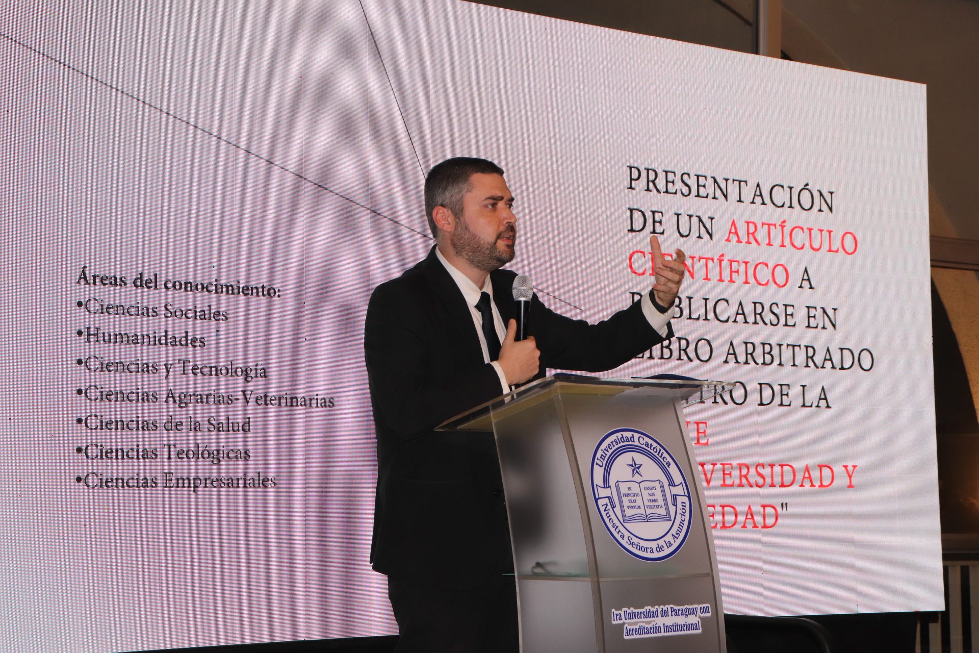 El acto fue presidido por el Rector UC, Pbro. Dr. Cristino Bohnert Bauer, quien destacó la importancia de la investigación como motor de desarrollo académico y social. “La búsqueda constante y el trabajo en investigación hacen parte importante de una universidad seria… con eso hacemos patria”, expresó, reafirmando el compromiso institucional con la excelencia y recordando que la UC fue la primera universidad acreditada en Paraguay.
