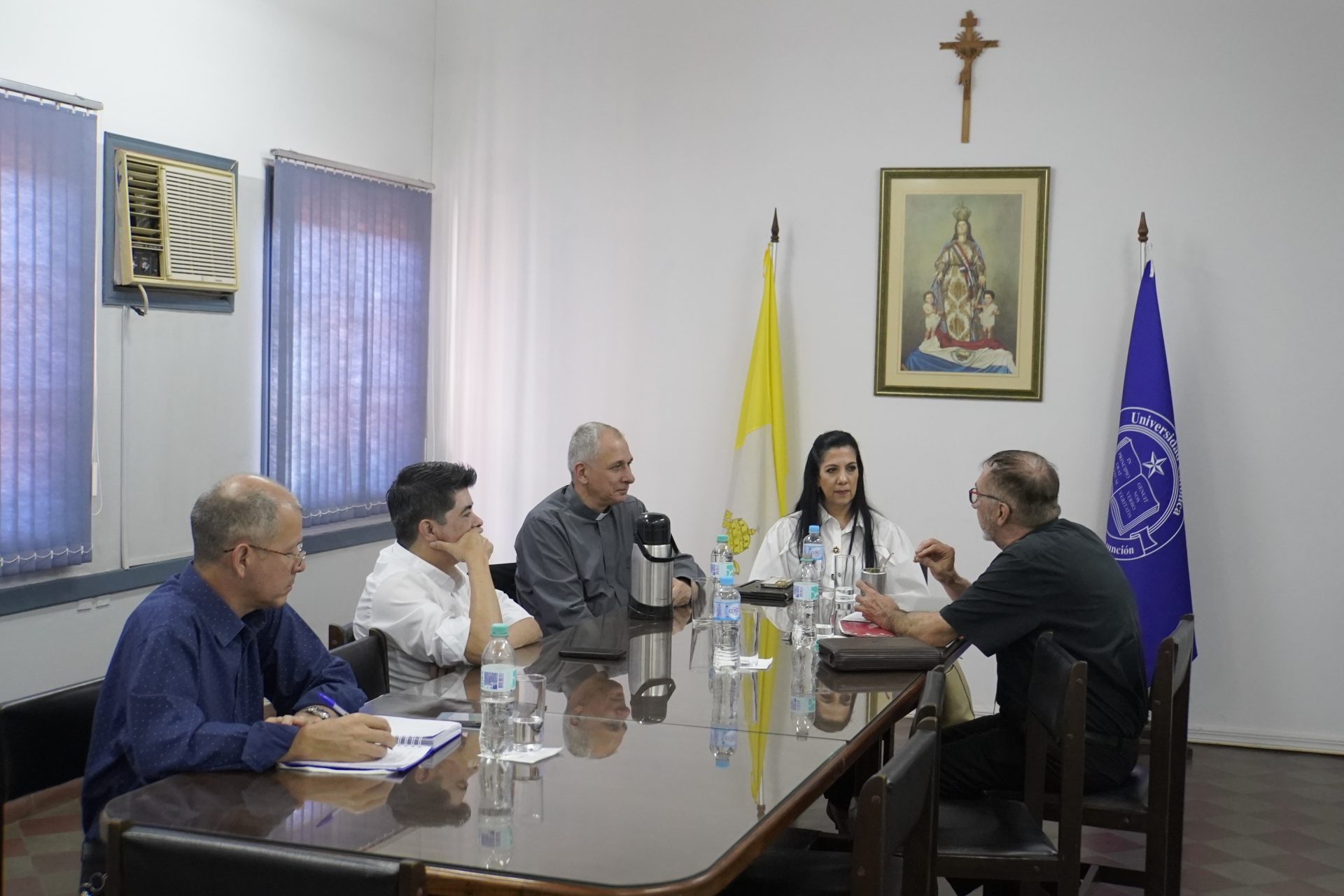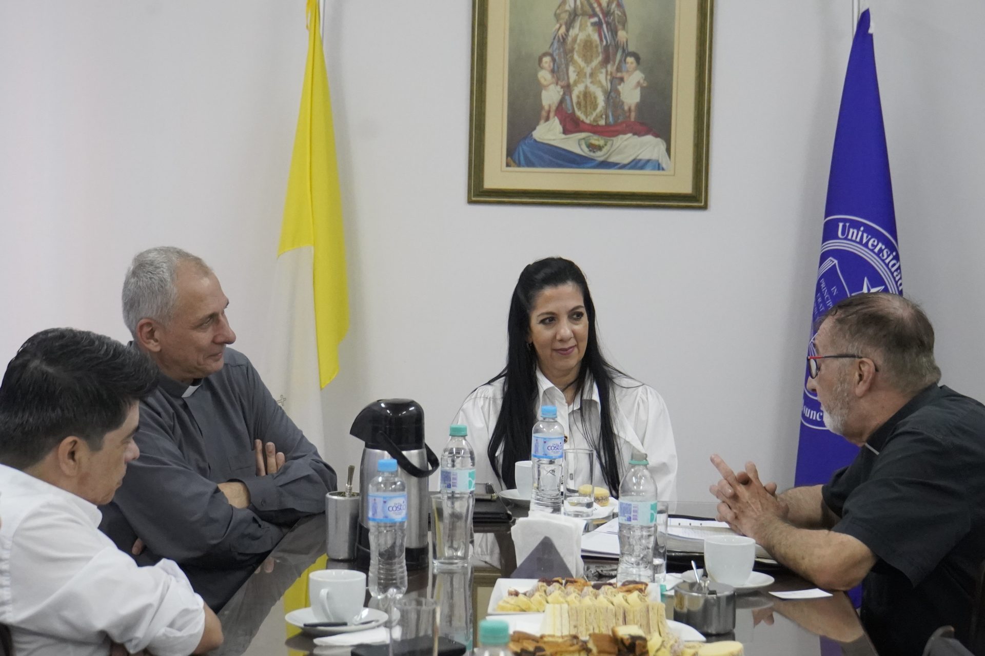 Por parte de la Universidad Católica NSA, participaron de la reunión el Rector Pbro. Dr. Cristino Bohnert Bauer, la Vicerrectora Académica y de Investigación Mgter. Rossanna Benítez Ortíz, el Secretario General Pbro. Mag. Sergio Ayala Viveros y el secretario ejecutivo del gabinete de rectorado Lic. Arnaldo Bogado.