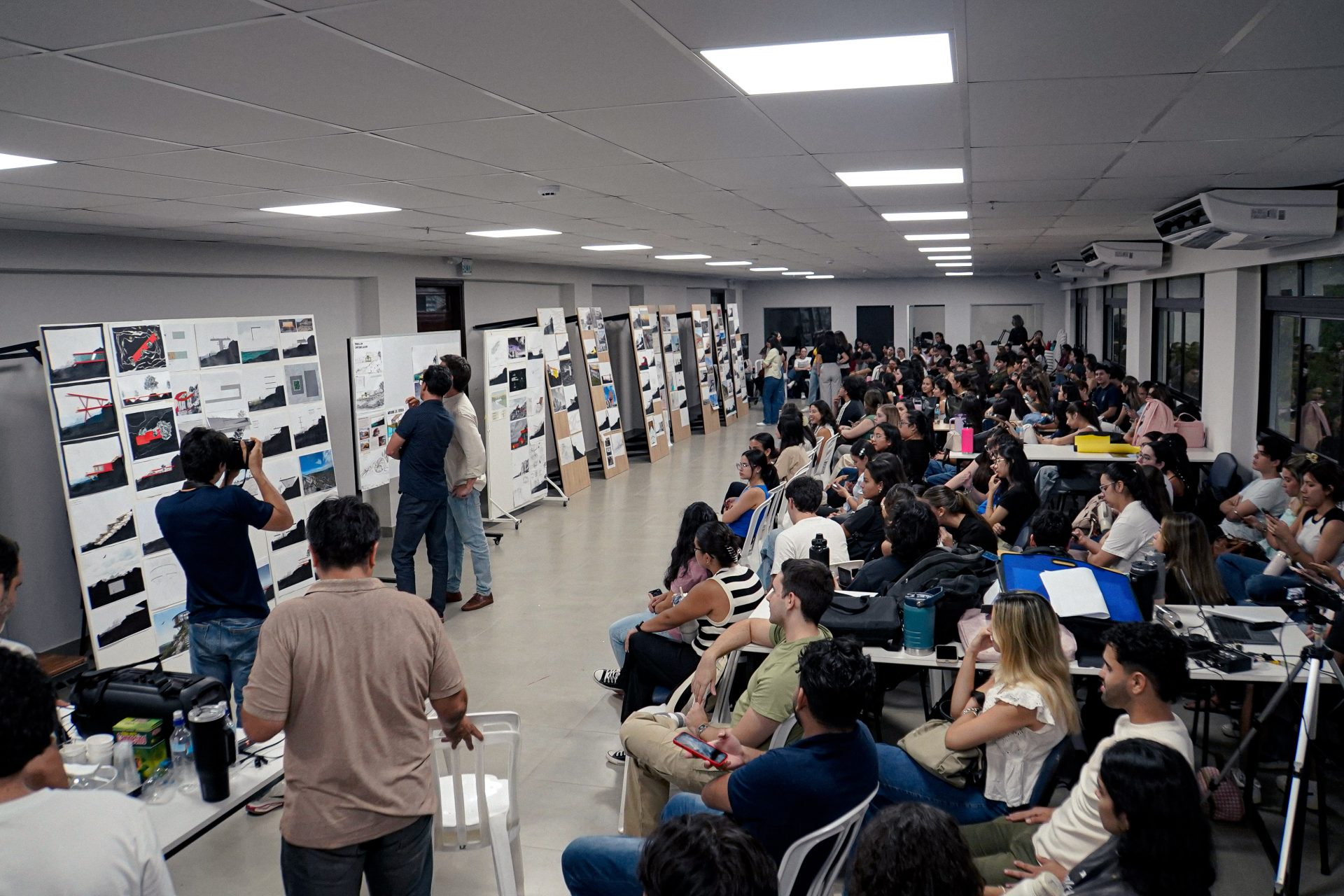 El workshop culminó con la presentación y evaluación de los trabajos realizados por los estudiantes, instancia que contó con la participación del Arq. Gualano y docentes de la carrera de Arquitectura, quienes acompañaron el proceso de análisis y retroalimentación de las propuestas desarrolladas.
