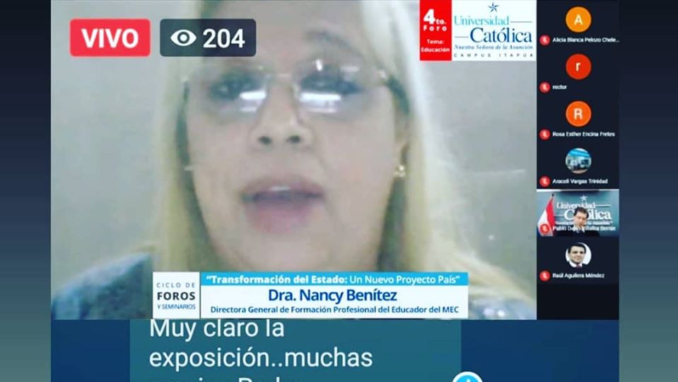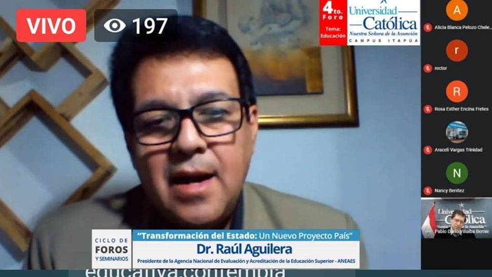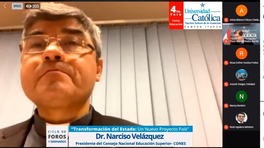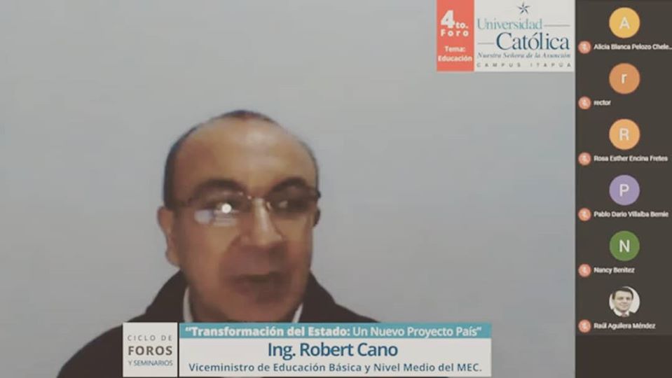 El viernes 14 de agosto se desarrolló el cuarto foro «Transformación del Estado: Un nuevo proyecto país», como parte del ciclo de conferencias organizado por la Universidad Católica «Nuestra Señora de la Asunción» Campus Itapúa, el encuentro se llevó a cabo mediante la plataforma virtual Google Meet y fue trasmitido a toda la comunidad educativa a través de Facebook Live.