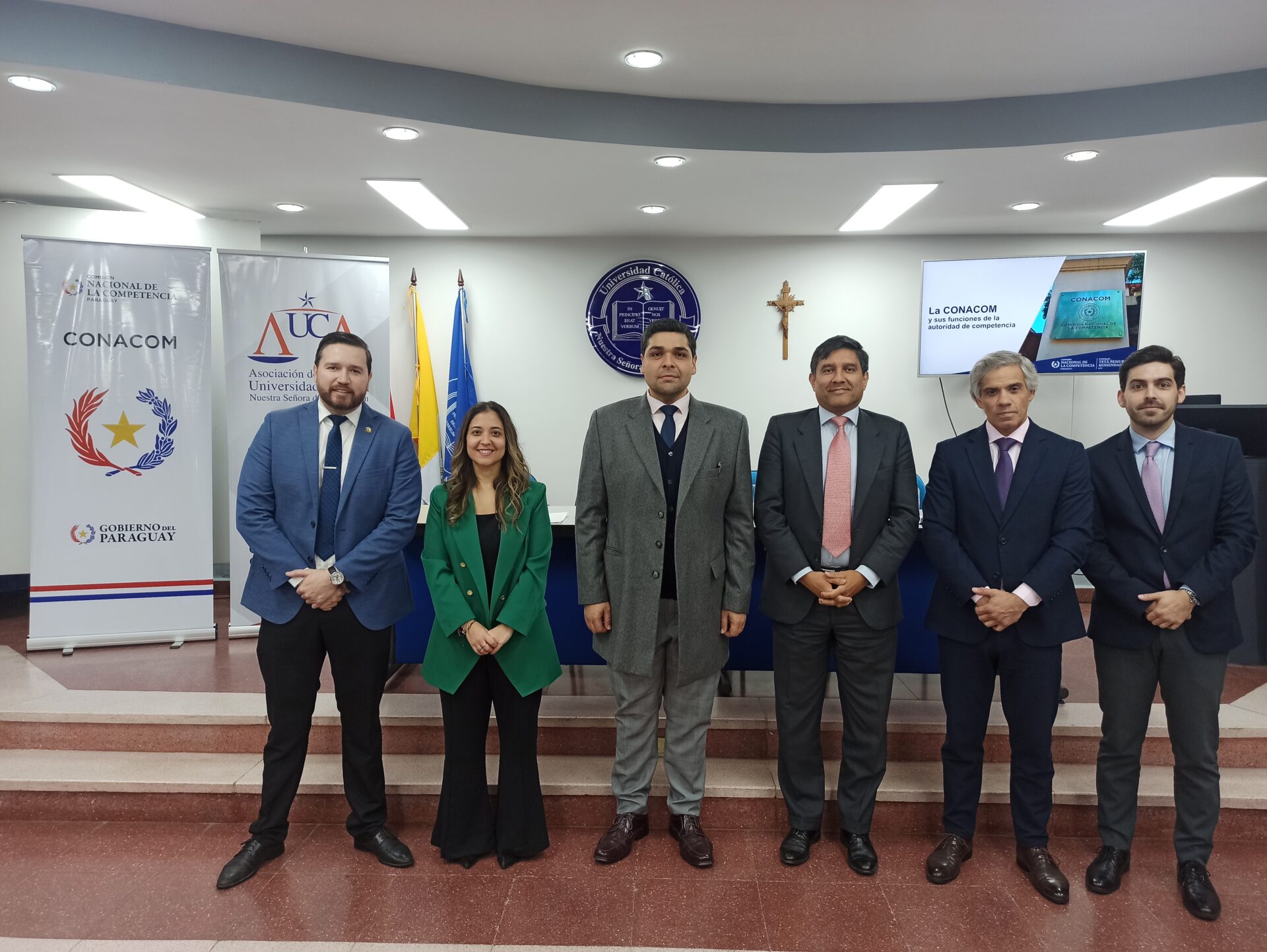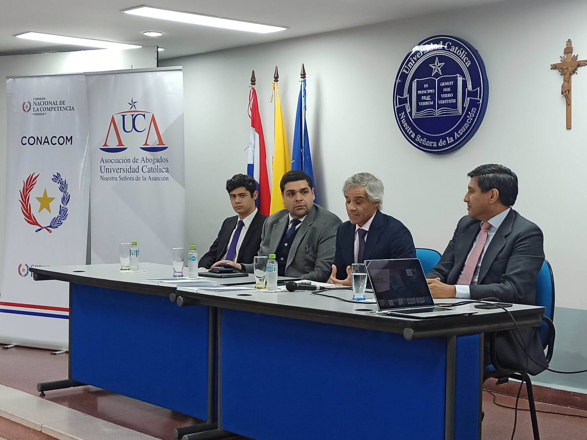 En el marco de un ciclo de charlas y conferencias organizado por la Asociación de Abogados egresados de la Universidad Católica, se llevó a cabo este jueves 22 de agosto la presentación sobre “Defensa y Promoción de la Competencia en Paraguay”. La misma fue coordinada en conjunto con el Centro de Estudiantes de la Facultad de Ciencias Jurídicas y Diplomáticas – Campus Asunción (CEDUC), la Asociación Paraguaya de Estudio sobre Defensa de la Competencia (APEDEC) y la Comisión Nacional de la Competencia (CONACOM).
