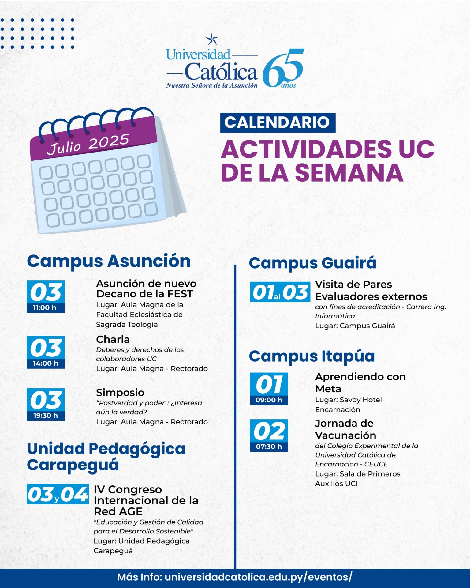 Agenda Semanal UC del 01 de julio al 06 de julio