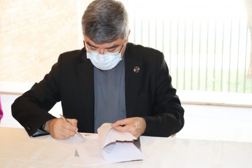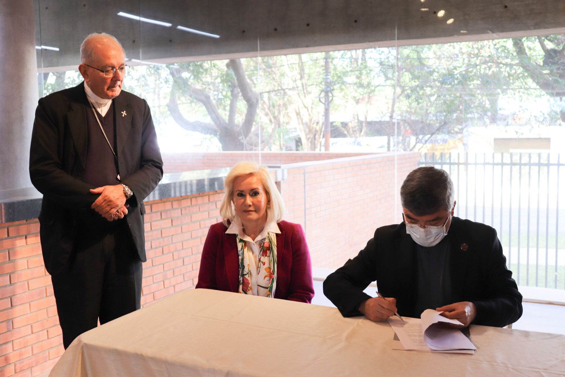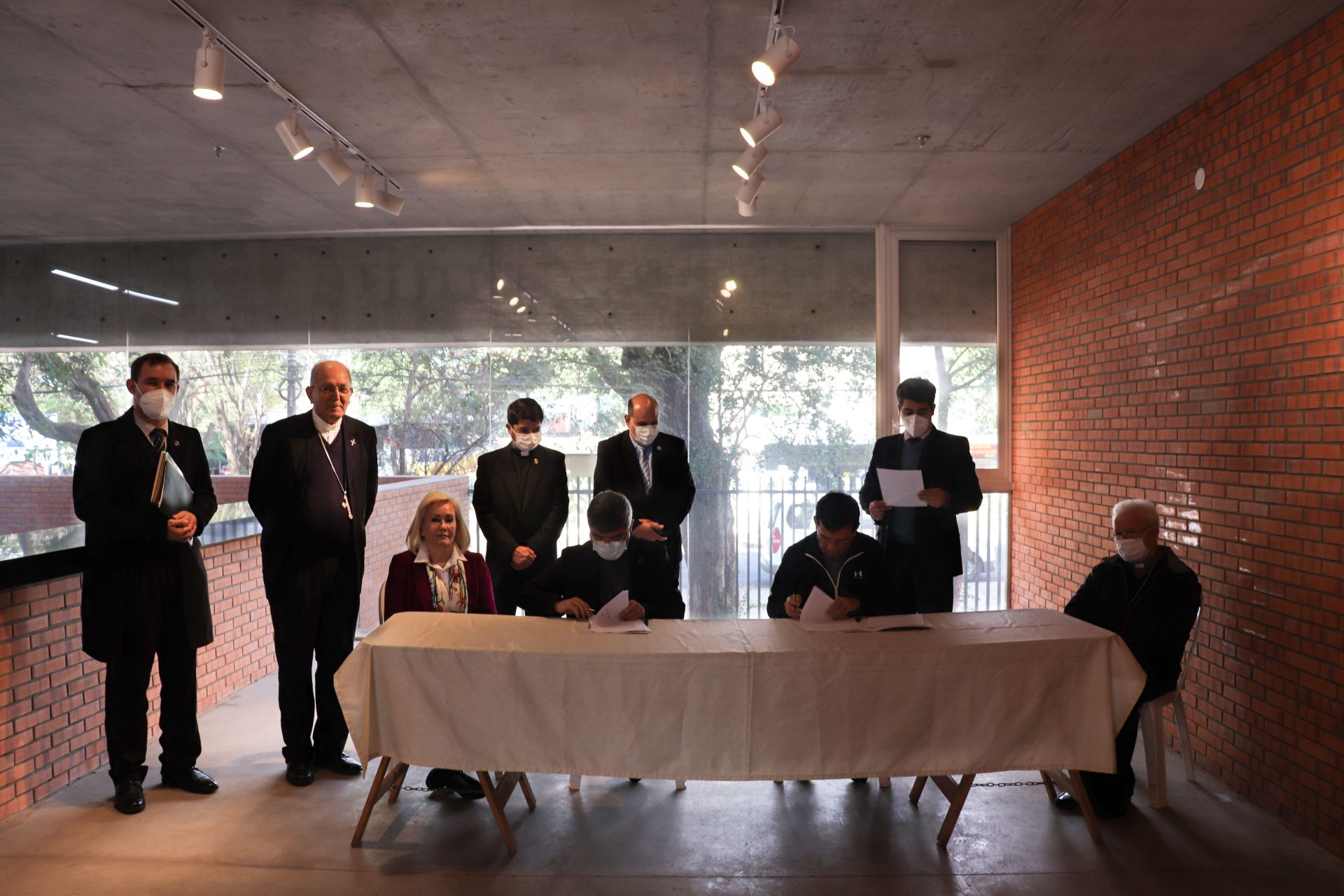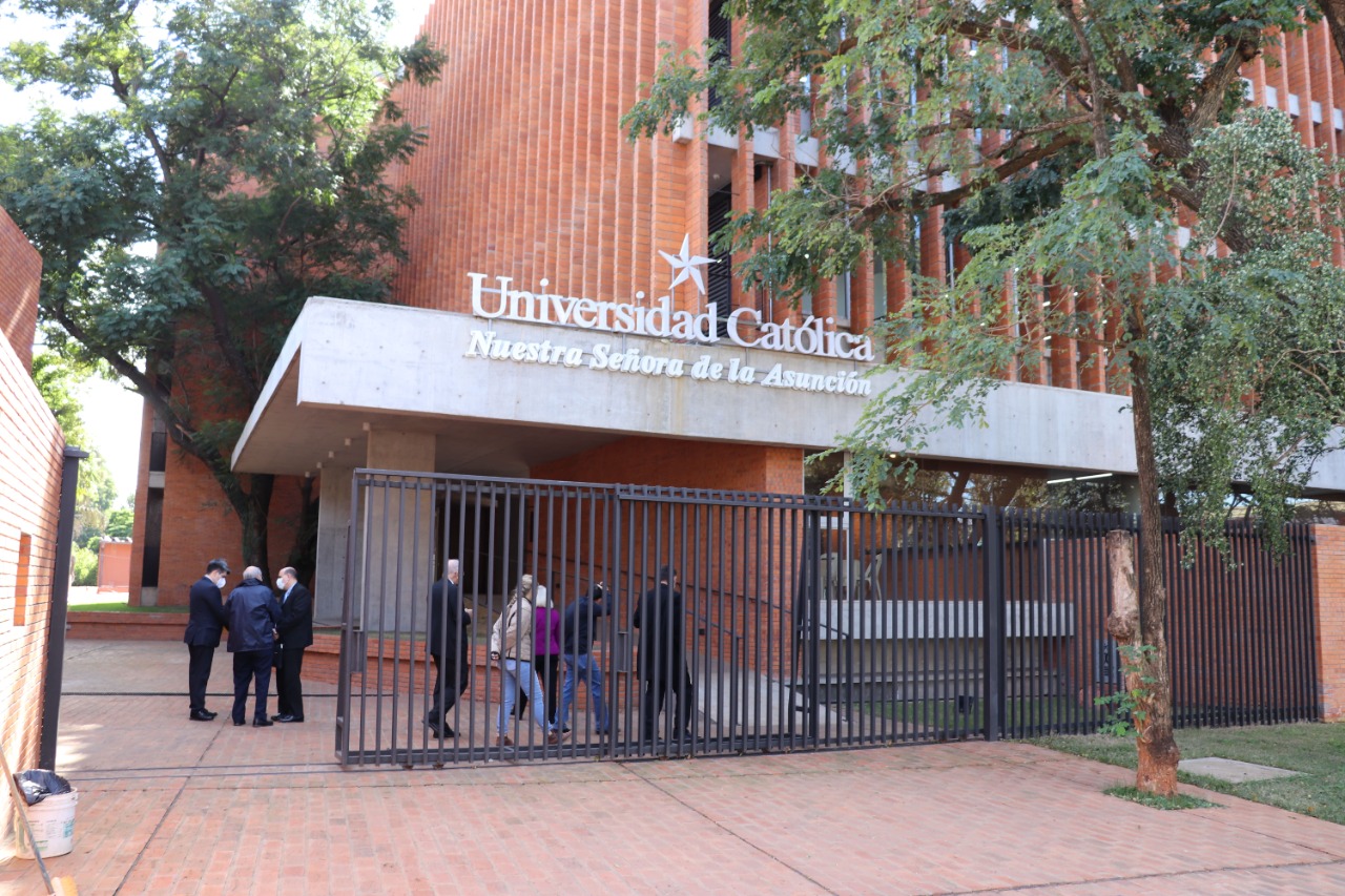 Se llevó a cabo durante la jornada del martes 12 de julio y acudieron al acto los miembros del Consejo de Gobierno de la Universidad Católica, Monseñor Edmundo Valenzuela Mellid, Gran Canciller, Pbro. Dr. Narciso Velázquez Ferreira, Rector, Mag, Teresa de Jesús Servín, Vicerrectora de Administración y Finanzas, los asesores consejeros Abog. César Rufinelli, Monseñor Ignacio Gogorza, Pbro. Sergio Ayala y Abog. Gabriel Benítez, Secretario General.