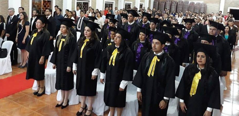 El Salón de Actos del colegio subvencionado “Nuestra Señora de Caacupe”, acogió, el viernes 19 de octubre, la ceremonia de graduación del alumnado titulado en el curso 2017/2018 de la Unidad Pedagógica de San Pedro del Paraná, Campus Itapúa.