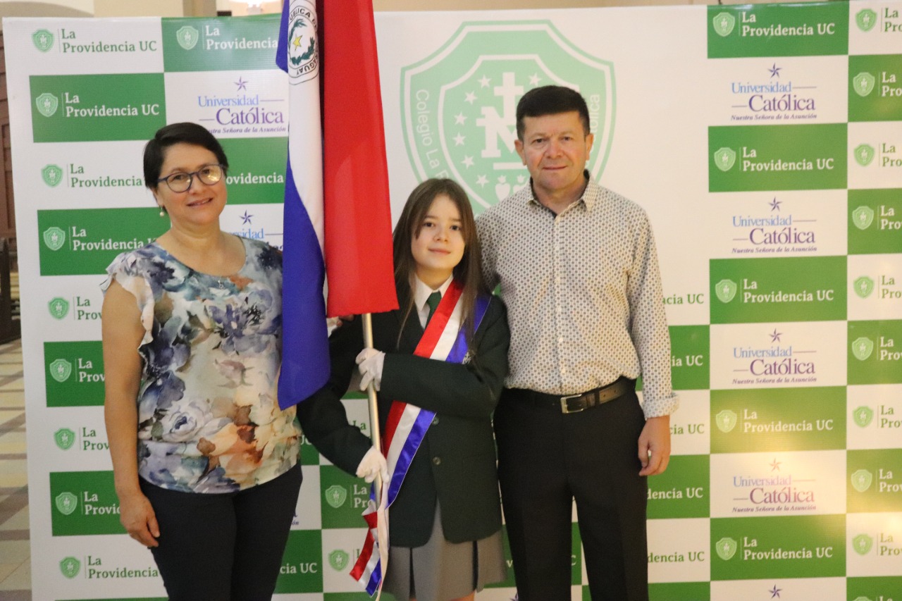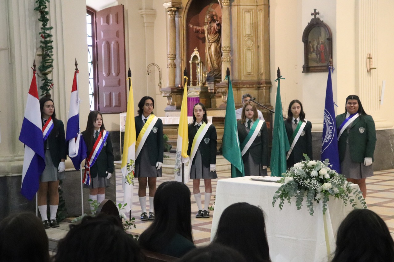 Así mismo, los estudiantes que conformaron el cuadro de honor del noveno y tercer año entregaron las banderas papal, nacional e institucional a los alumnos del octavo y segundo curso que en adelante serán los abanderados de la institución.