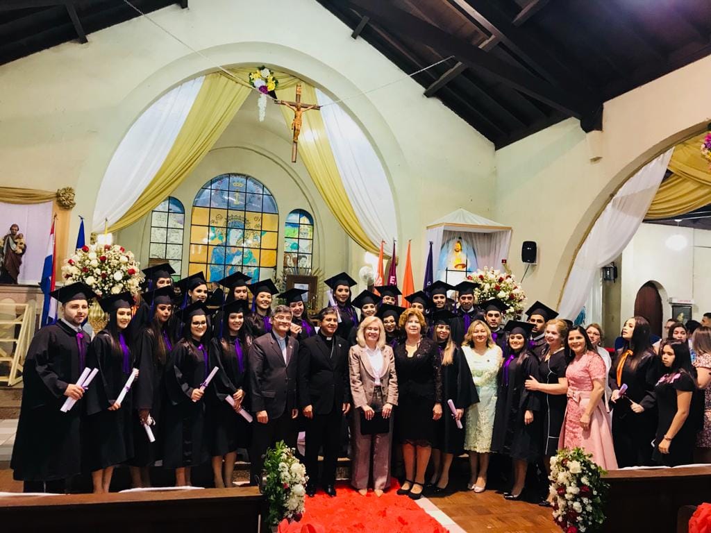 Durante la ceremonia se realizó la Misa de Acción de Gracias celebrada por el Monseñor Miguel Ángel Cabello Obispo de la Diócesis de la Santísima Concepción con la presencia de egresados y egresadas de las Carreras de Enfermería, Derecho, Administración de Empresas, Arquitectura, Contador Público Nacional y Comercio Internacional.