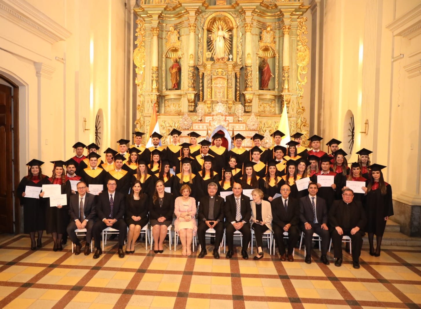 Terminada la ceremonia eucarística se desarrolló el acto académico, con el juramento de los egresados tomado por el Rector Pbro. Dr. Narciso Narciso Velázquez Ferreira, para pasar a la entrega de títulos y reconocimiento a los egresados sobresalientes y distinguidos. Acompañaron el evento, autoridades, docentes, padrinos y madrinas de promoción, amigos y familiares de los flamantes nuevos profesionales.
