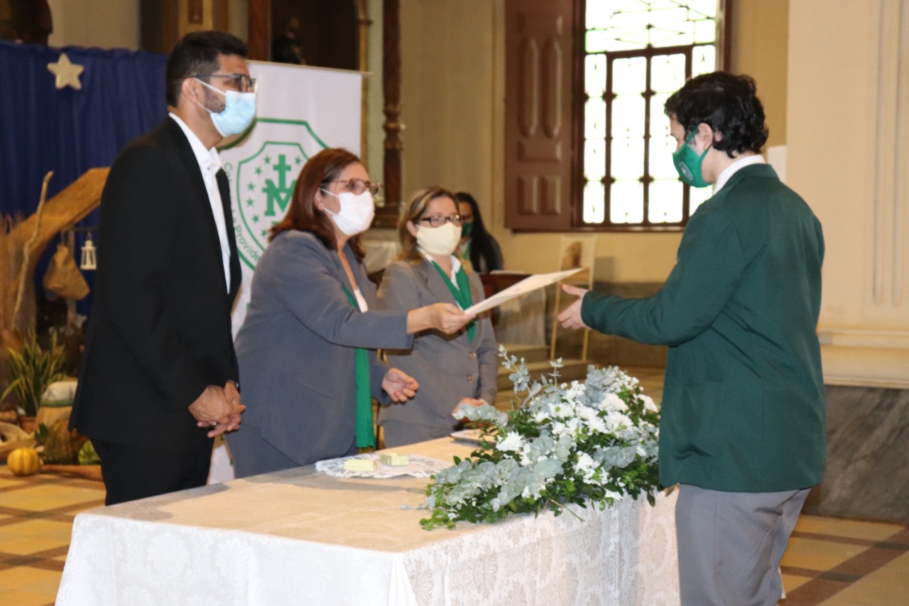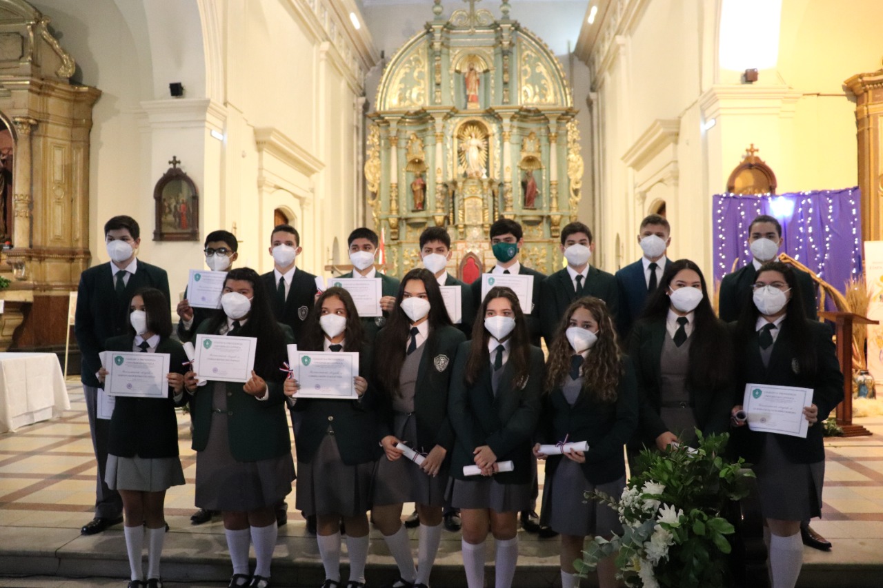 En la primera ceremonia y celebración eucarística participaron los alumnos egresados del Tercer Curso del Bachiller en Ciencias Sociales, quienes recibieron sus diplomas de egreso del Bachillerato y menciones de honor a los alumnos destacados, fueron acompañados por los padres de familia, autoridades y docentes del Colegio.