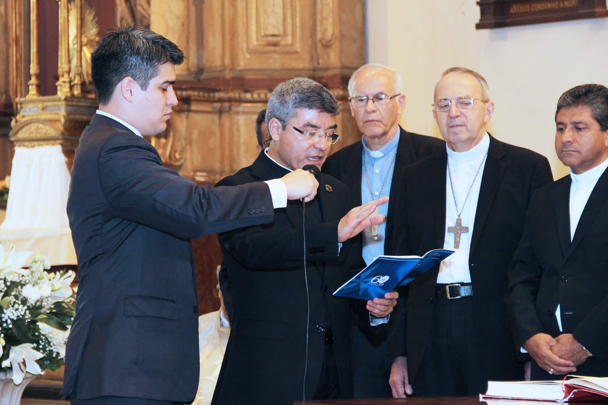 El primero en pronunciar sus votos fue el Rector Pbro. Dr. Narciso Velázquez Ferreira reelecto por un segundo período. Le siguieron los vicerrectores, Mag. Guillermo Von Lucken y Lic. María Teresa de Jesús Servín Abente MAE, los consejeros asesores del Consejo de Gobierno General, Mons. Ignacio Gogorza, Pbro. Lic. Sergio Ayala, y el Abog. César Rufinelli.