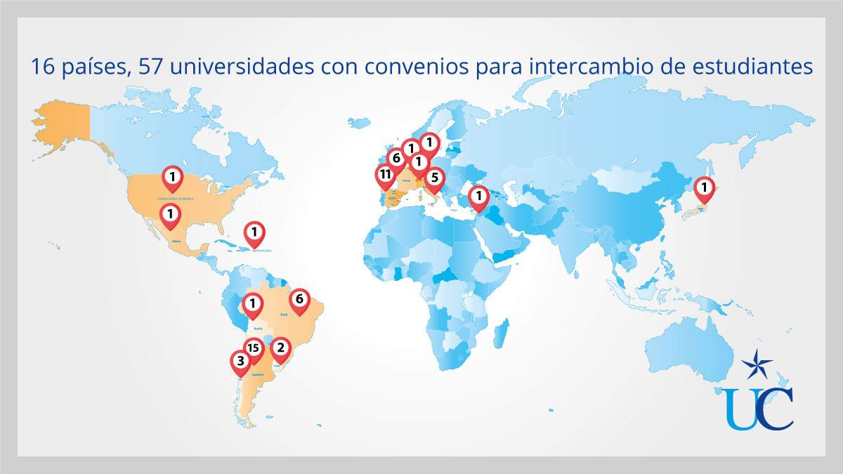 La Universidad Católica “Nuestra Señora de la Asunción” tiene convenios vigentes con 57 Universidades de 16 países en los que se establece la posibilidad de que estudiantes de la UC realicen intercambios para cursar desde uno a dos semestres de la carrera de grado. Los alumnos interesados deben reunir requisitos específicos y realizar un proceso de aplicación para acceder a los intercambios.