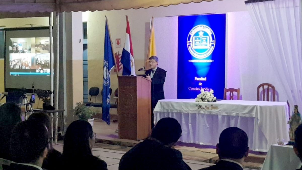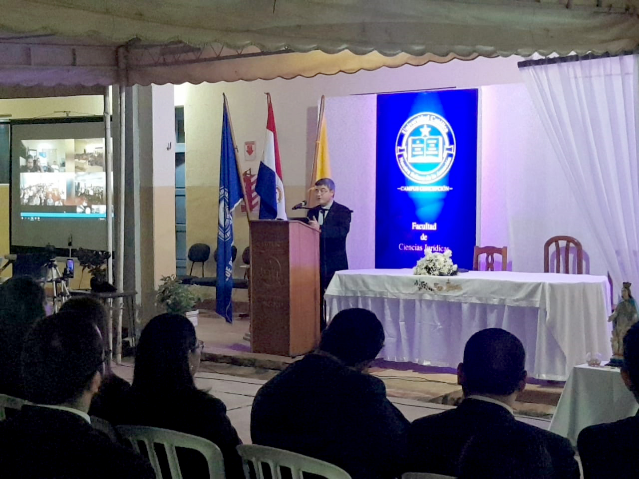 La apertura oficial del año lectivo de la Universidad Católica “Nuestra Señora de la Asunción” se dio el pasado jueves 4 de abril desde la sede del campus Concepción de la UC y fue transmitido en vivo para todo el país. En primer lugar, el Obispo de Concepción y Amambay, Mons. Miguel Cabello celebró una misa y luego el Rector, Pbro. Dr. Narciso Velázquez dio una charla magistral.
