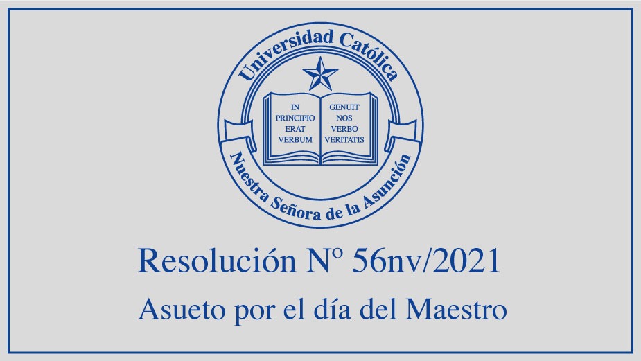 Art.1º. Declarar asueto universitario el día viernes 30 de abril de 2021, en conmemoración del Día del Maestro, efectivo en toda la Universidad Católica “Nuestra Señora de la Asunción”, y en consecuencia disponer la suspensión de las actividades académicas y administrativas, en adhesión a tan significativa fecha.