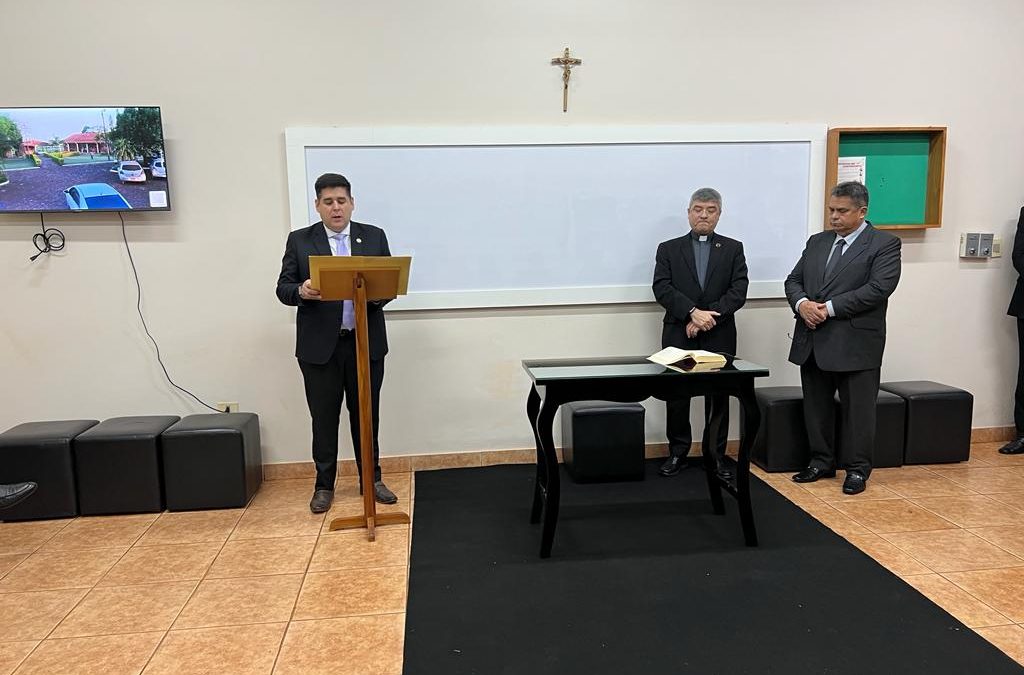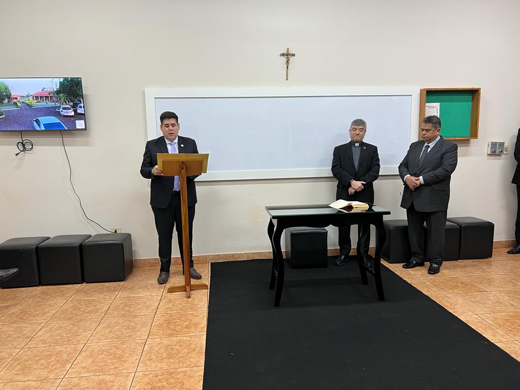 En fecha viernes 18 de agosto, se llevó a cabo la toma de posesión del nuevo Director General de la Unidad Pedagógica Santa Rita, el Lic. Florencio Ortíz Maidana, nombrado por Resolución N° 150nv/2023. El acto se realizó en la sede de la Unidad Pedagógica y contó con la distinguida presencia del Mons. Guillermo Steckling, Obispo de la Diócesis de Ciudad del Este, autoridades del Consejo de Gobierno General UC, el Pbro. Dr. Narciso Velázquez Ferreira, quien tomó juramento al Sr. Ortíz Maidana y la Vicerrectora de Administración y Finanzas, la Dra. Teresa de Jesús Servín Abente, MAE. Así también honraron con su presencia el Supervisor de Gestión de la Unidades Pedagógicas, el Lic. Bruno Aldana MAE, la Secretaria General de la UP Santa Rita, Isabel Wottrich, el Director de la Carrera de Derecho de la UP Santa Rita, el Abog. Bernardo Silva, docentes e invitados.
