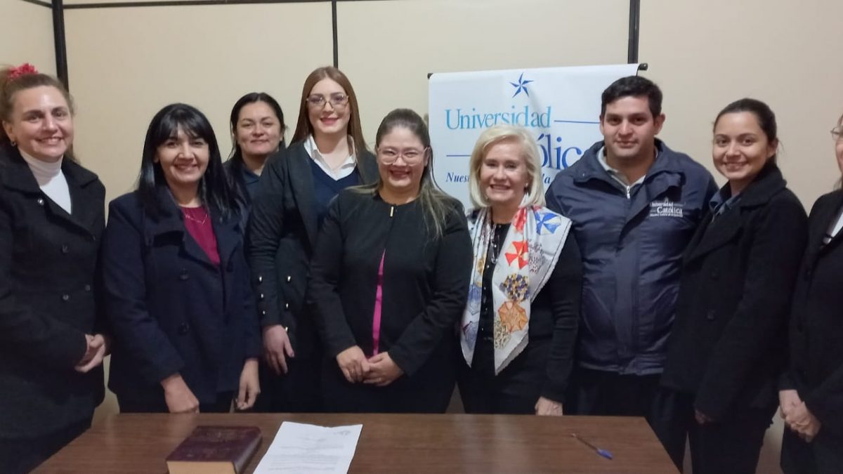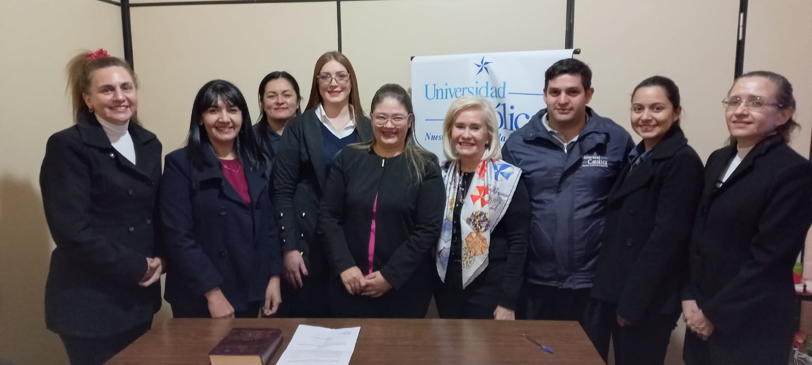 Y acompañaron la Abog. Minerva Izquierdo y la Lic. Ana María Orué desde el Rectorado de la Universidad, junto a los miembros de la comunidad educativa de la UC María Auxiliadora integrada por Lic. Camila Ayala Gularte, Lic. Rolando Andrés Ayala, Ing. Agr. Marta Ramona Barzala, Lic. Celeste Galeano y la Ing. Agr. Yessica Acevedo.