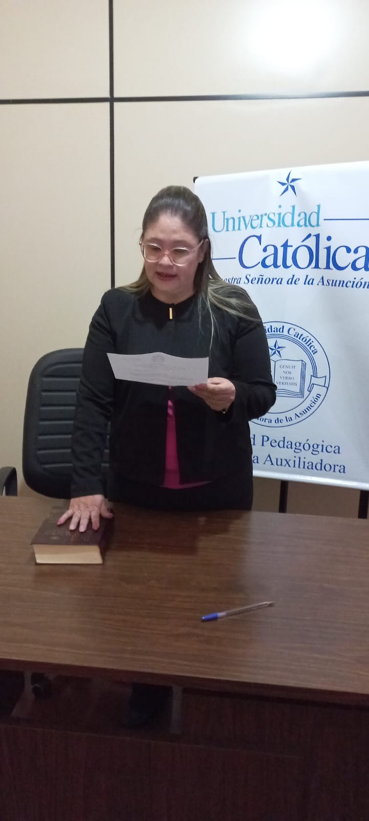 La nueva directora de la Unidad manifestó su alegría ante este nombramiento y expresó que; «Agradezco a los Directivos de la Universidad Católica Nuestra Señora de la Asuncion, por la confianza depositada en mi persona para dirigir tan prestigiosa casa de estudios, es un gran desafío personal y profesional que asumo hoy en la Unidad Pedagógica María Auxiliadora, en desempeño de mis funciones dedicaré mi mejor esfuerzo para enaltecer el nombre de la Universidad».
