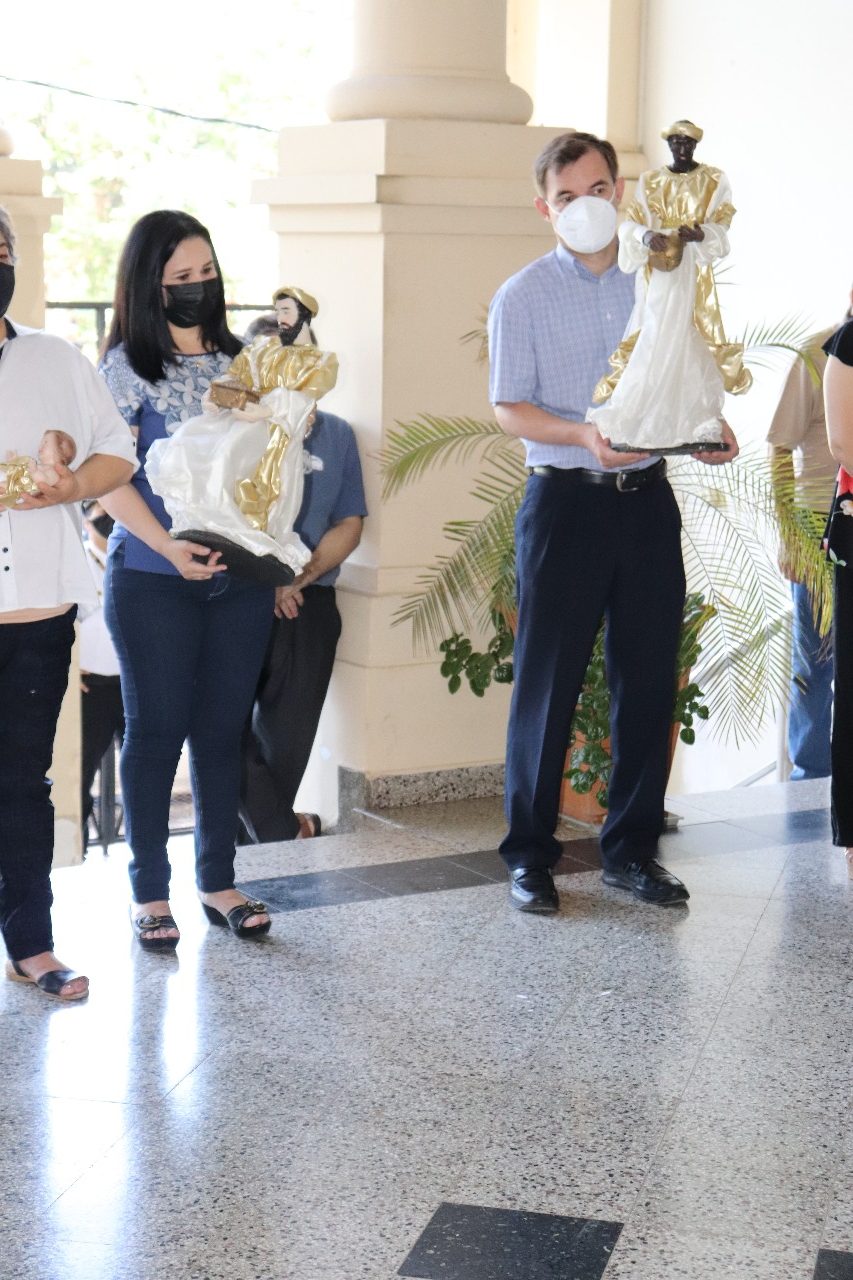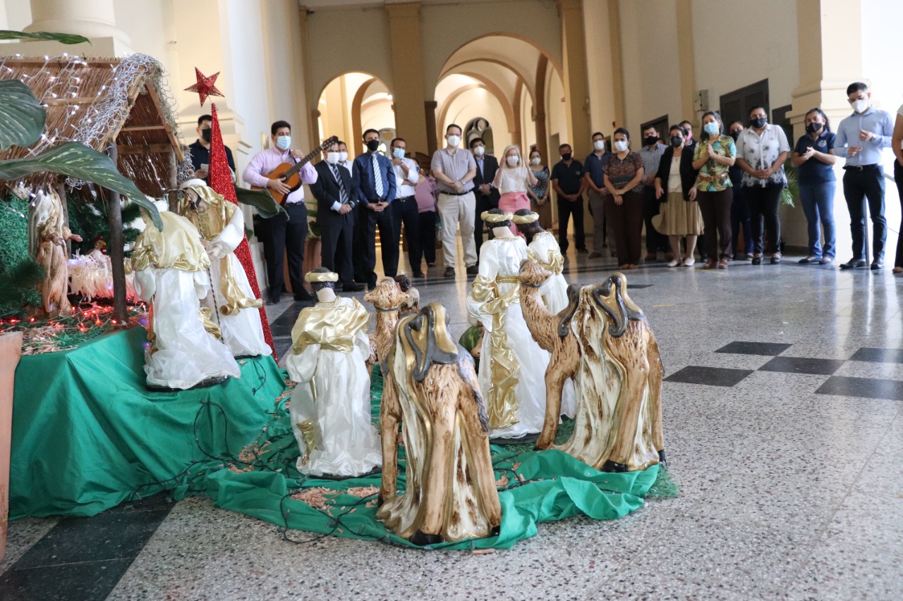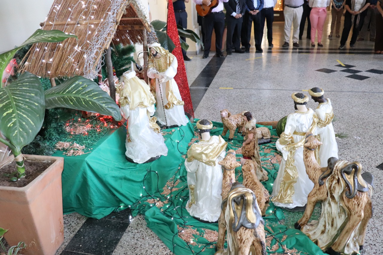 Entre villancicos y la evocación del Padre Nuestro se celebró la bendición del Pesebre Navideño en la Sede Rectorado de la Universidad Católica, el viernes 10 de diciembre. El Padre Julio Rojas, director de la Pastoral de la UC, presidió la ceremonia, que congregó a la gran familia de la Universidad Católica, con la participación de autoridades, docentes y funcionarios de la casa de estudios.