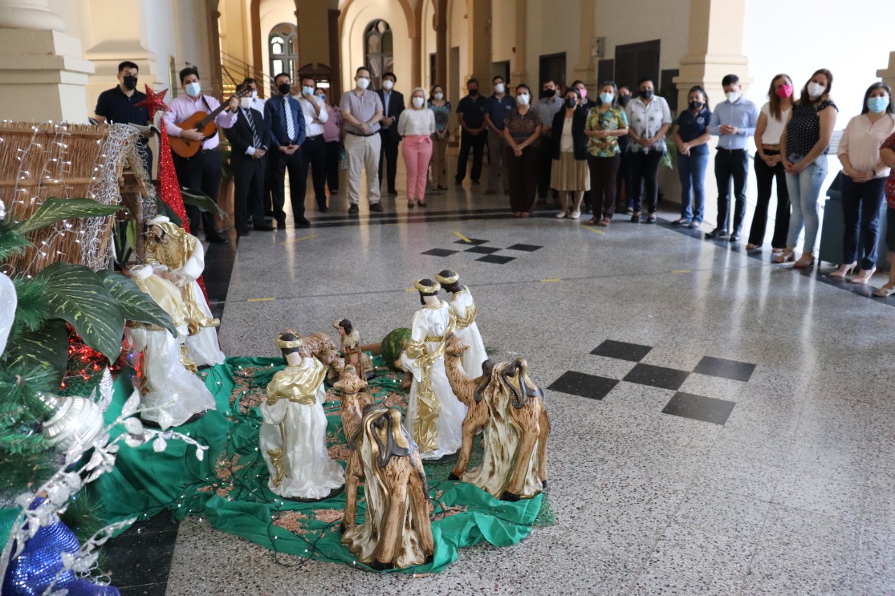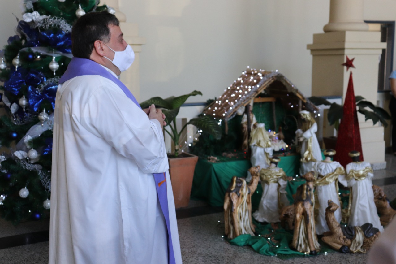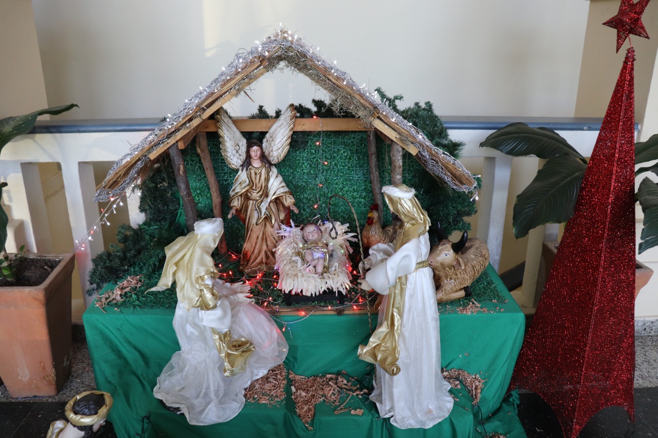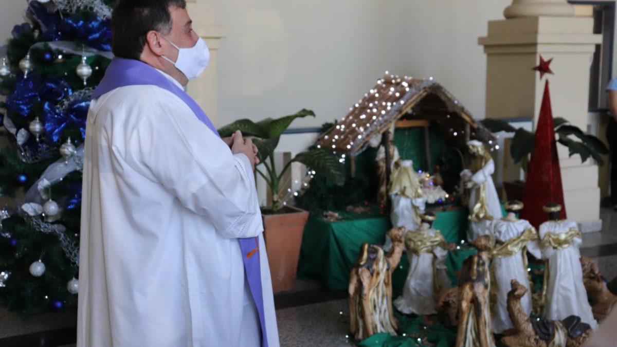 Entre villancicos y la evocación del Padre Nuestro se celebró la bendición del Pesebre Navideño en la Sede Rectorado de la Universidad Católica, el viernes 10 de diciembre. El Padre Julio Rojas, director de la Pastoral de la UC, presidió la ceremonia, que congregó a la gran familia de la Universidad Católica, con la participación de autoridades, docentes y funcionarios de la casa de estudios.