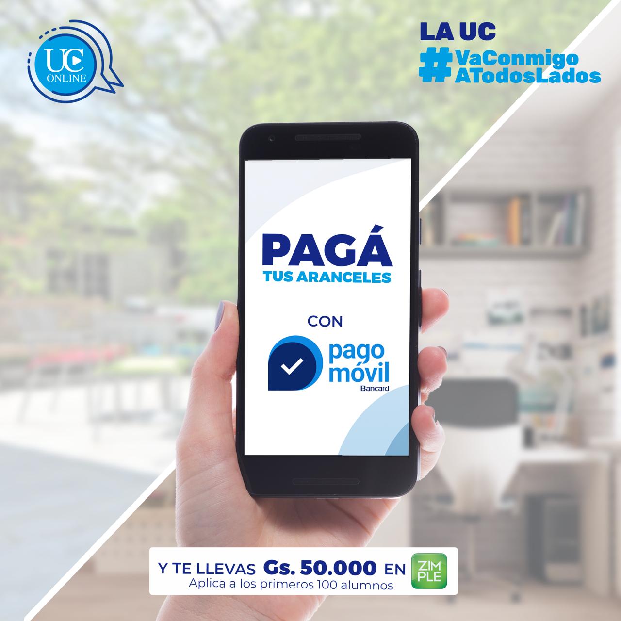 - PARTICIPA DE LA PROMOCIÓN CADA USUARIO DISTINTO DE PAGO MÓVIL QUE REALICE POR LO MENOS UN PAGO DE LA Universidad Católica “Nuestra Señora de la Asunción” Y SE LLEVA DE FORMA DIRECTA LA ACREDITACIÓN DE PYG 50.000 (guaraníes cincuenta mil) EN SU BILLETERA ZIMPLE.