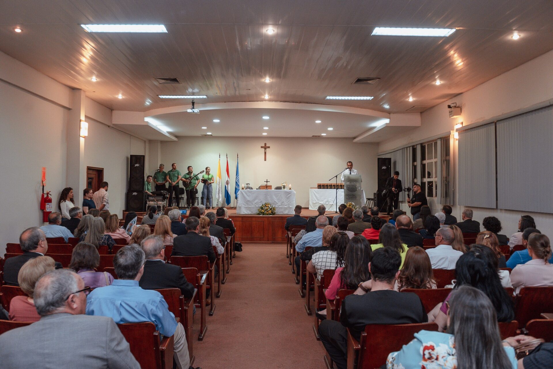El aula magna de la Universidad Católica- Campus Alto Paraná sirvió de escenario para la Misa de Acción de Gracias, concelebrada por el Mons. Guillermo Steckling, Obispo de la Diócesis de Ciudad del Este, Pbro. Lic. Waldemar Sánchez, Director General del Campus Guairá y el Pbro. Roberto Zacarias, Director de la Pastoral Universitaria del Campus Alto Paraná. Seguida, de una significativa y emotiva ceremonia, que contó con la presencia de la Vicerrectora de Administración y Finanzas, la Dra. Teresa Servin Abente, y autoridades de varios otros Campus y Unidades Pedagógicas de la UC, así como autoridades locales.