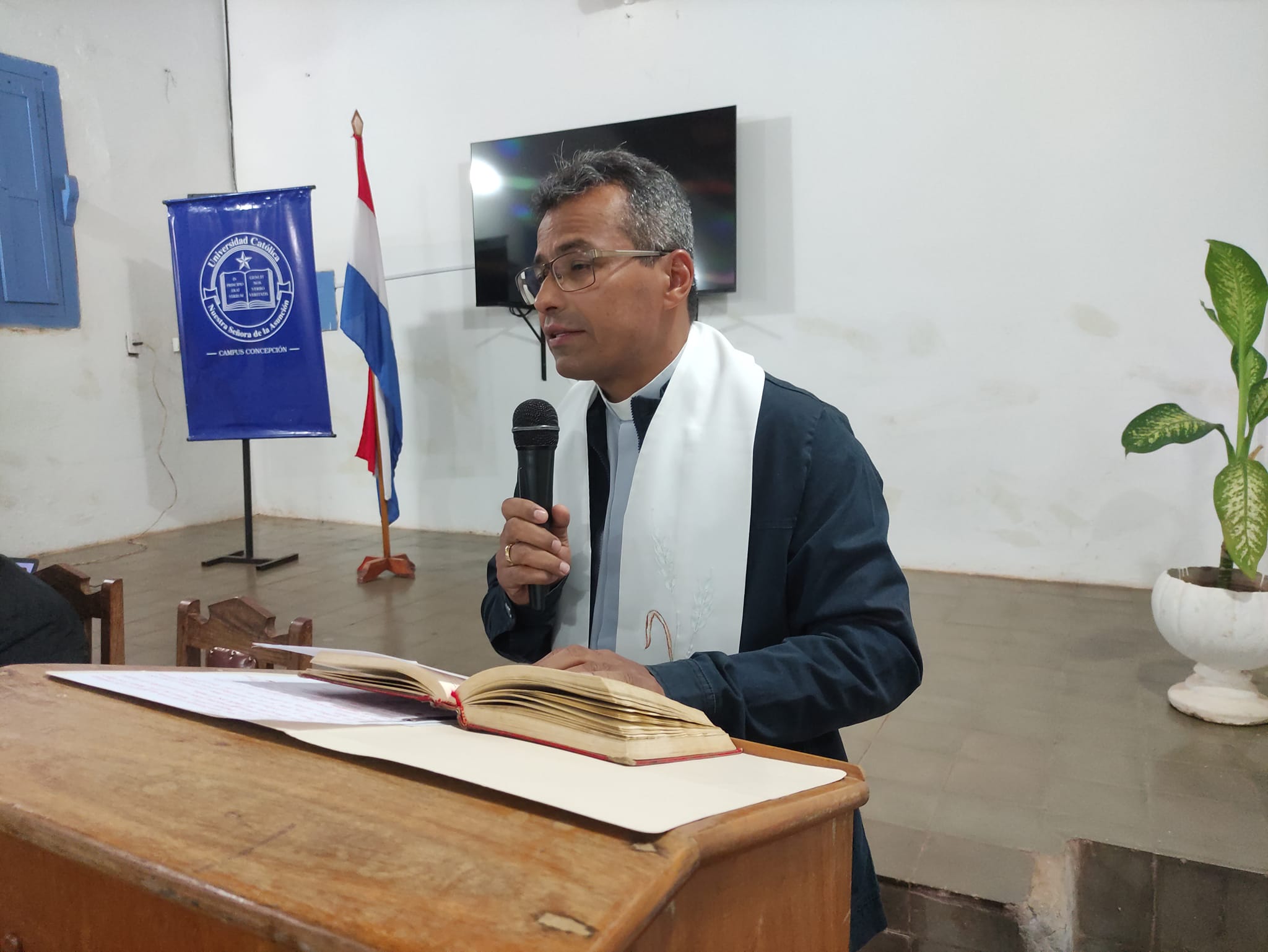 La Universidad Católica Campus Concepción celebró 63 años de servicio a la educación superior y para conmemorar la ocasión, la comunidad académica y autoridades del Campus se dieron cita en la sede de la Facultad de Ciencias Jurídicas de Concepción, el acto se inició con la bendición del Pbro. Carlos Olguin y palabras de ocasión del director general del Campus Universitario Concepción, Mag. Richard Alarcón Arredondo.