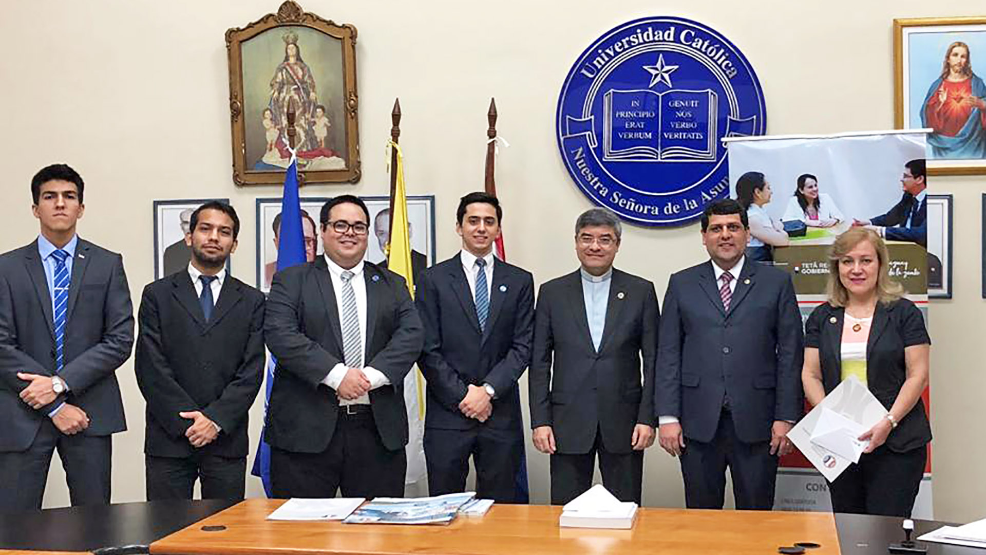 El convenio se firmó con la presencia del Ministro Secretario Ejecutivo de la SEDECO, Abg. Juan Marcelo Estigarribia, y como testigos de honor acudieron el Rector de Universidad Católica, Pbro. Dr. Narciso Velázquez Ferreira y la Vicedecana de la Facultad de Ciencias Jurídicas y Diplomáticas, Abg. Diana Cáceres.